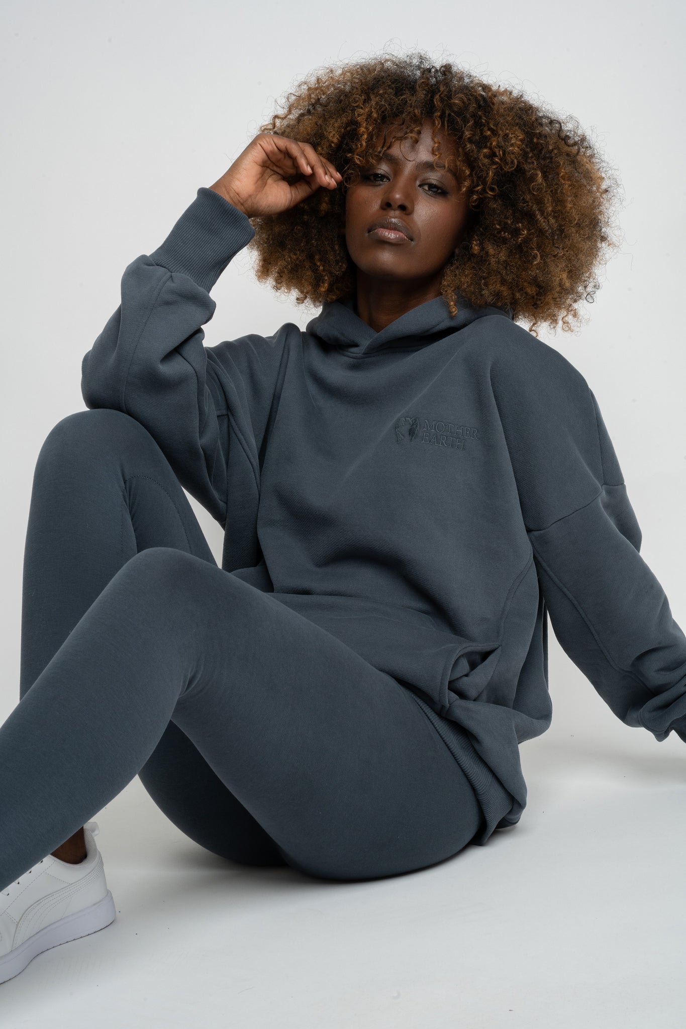 BLUZA OVERSIZE Z KAPTUREM GRAFITOWA- EGERIA