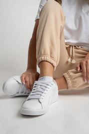 Milos to spodnie dresowe o bardzo klasycznym fasonie. Zapewniają pełną swobodę ruchów i wygodę. Mają miękką gumę w pasie oraz podobne gumy na nogawkach. W pasie jest bawełniany sznurek zakończony kolorowymi owijkami. Dodatkowym atutem są pojemne kieszenie z przodu. Spodnie są idealne do codziennych stylizacji. Spodnie uszyte są z naszej flagowej, grubej dzianiny 320g/m2, która nas wyróżnia. Jest ona gładka, ale przy tym bardzo mięsista. Od spodu posiada charakterystyczny splot diagonalny pokryty lekkim meszkiem, który w przyjemny sposób otula naszą skórę. Wierzchnia strona dzianiny także jest bardzo miła w dotyku, wykończona jest delikatnym meszkiem potocznie zwanym efektem brzoskwini, który nadaje jej wyjątkowej delikatności. Aby zachować ten efekt na dłużej i zredukować zjawisko mechacenia po praniu, w produkcji dzianiny zostały zastosowane specjalne enzymy, które świetnie spełniają swoją rolę. Naszą kolekcję spodni dresowych w 100% opieramy właśnie na tej wyjątkowej dzianinie. Z tej samej dzianiny szyjemy również wszystkie nasze bluzy. Nasza modelka ma 176 cm wzrostu i ma na sobie rozmiar M/L.