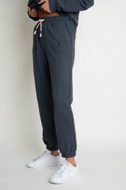 Spodnie uszyte są z naszej flagowej, grubej dzianiny 320g/m2, która nas wyróżnia. Jest ona gładka, ale przy tym bardzo mięsista. Od spodu posiada charakterystyczny splot diagonalny pokryty lekkim meszkiem, który w przyjemny sposób otula naszą skórę. Wierzchnia strona dzianiny także jest bardzo miła w dotyku, wykończona jest delikatnym meszkiem potocznie zwanym efektem brzoskwini, który nadaje jej wyjątkowej delikatności.