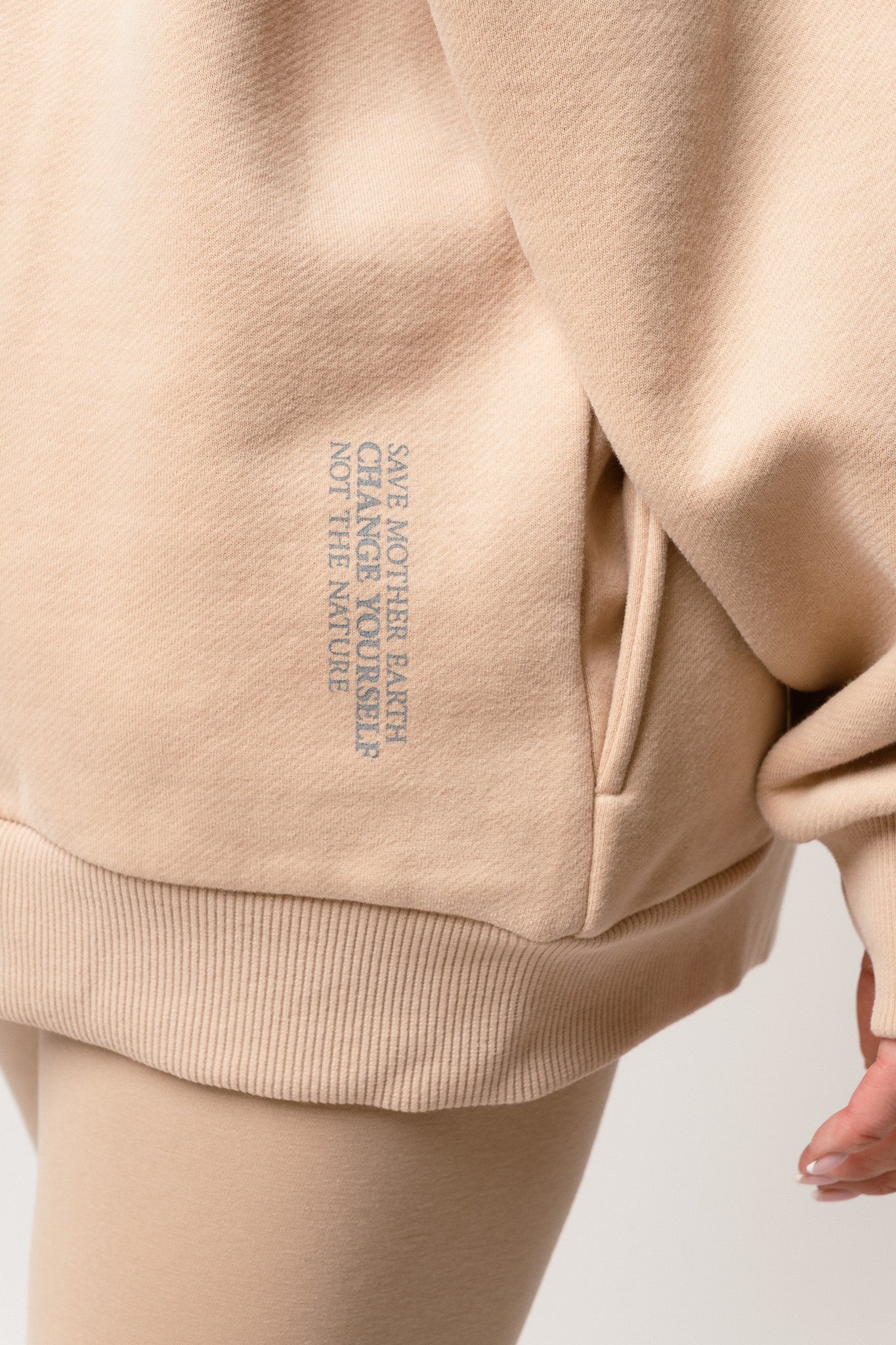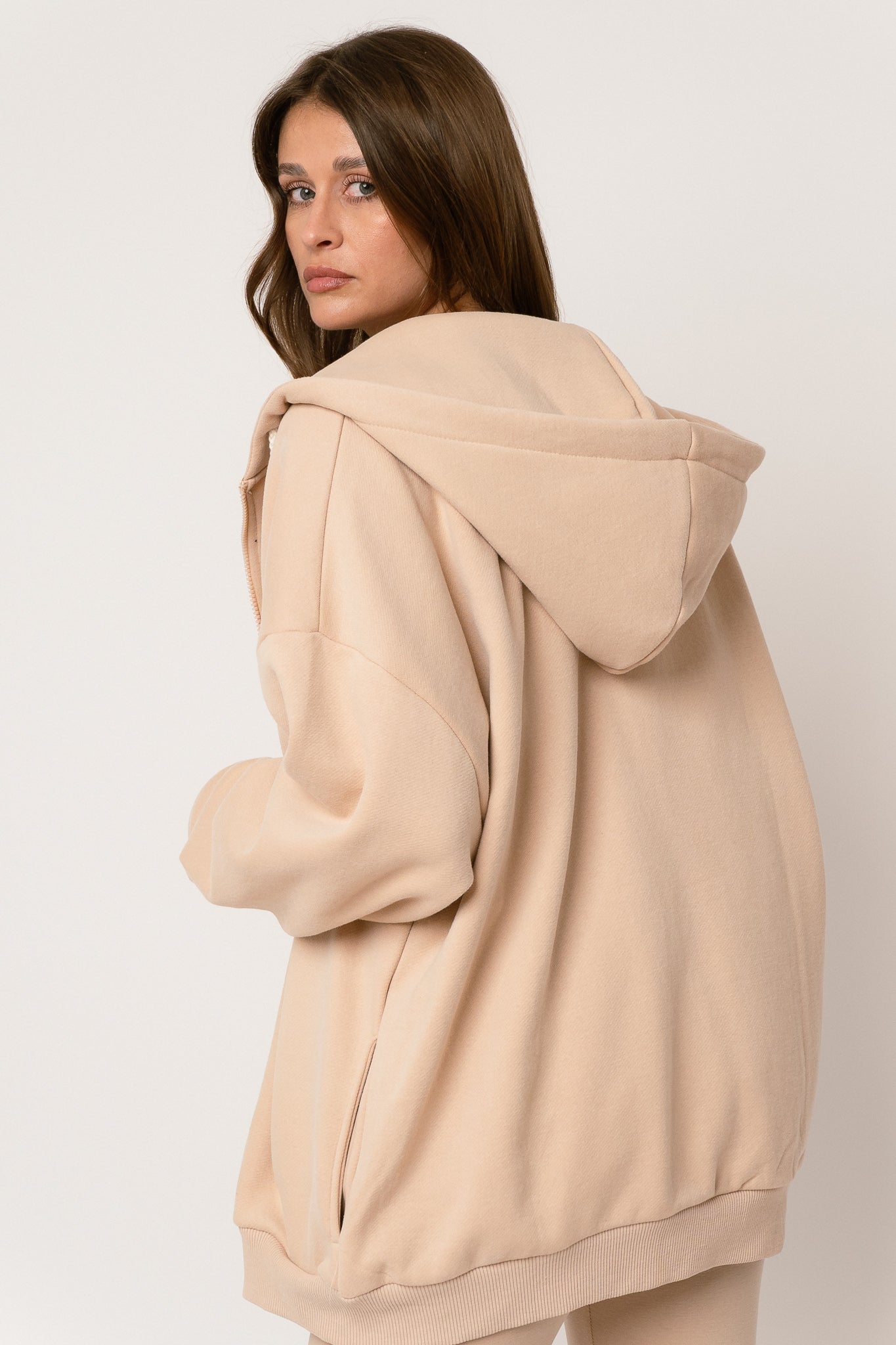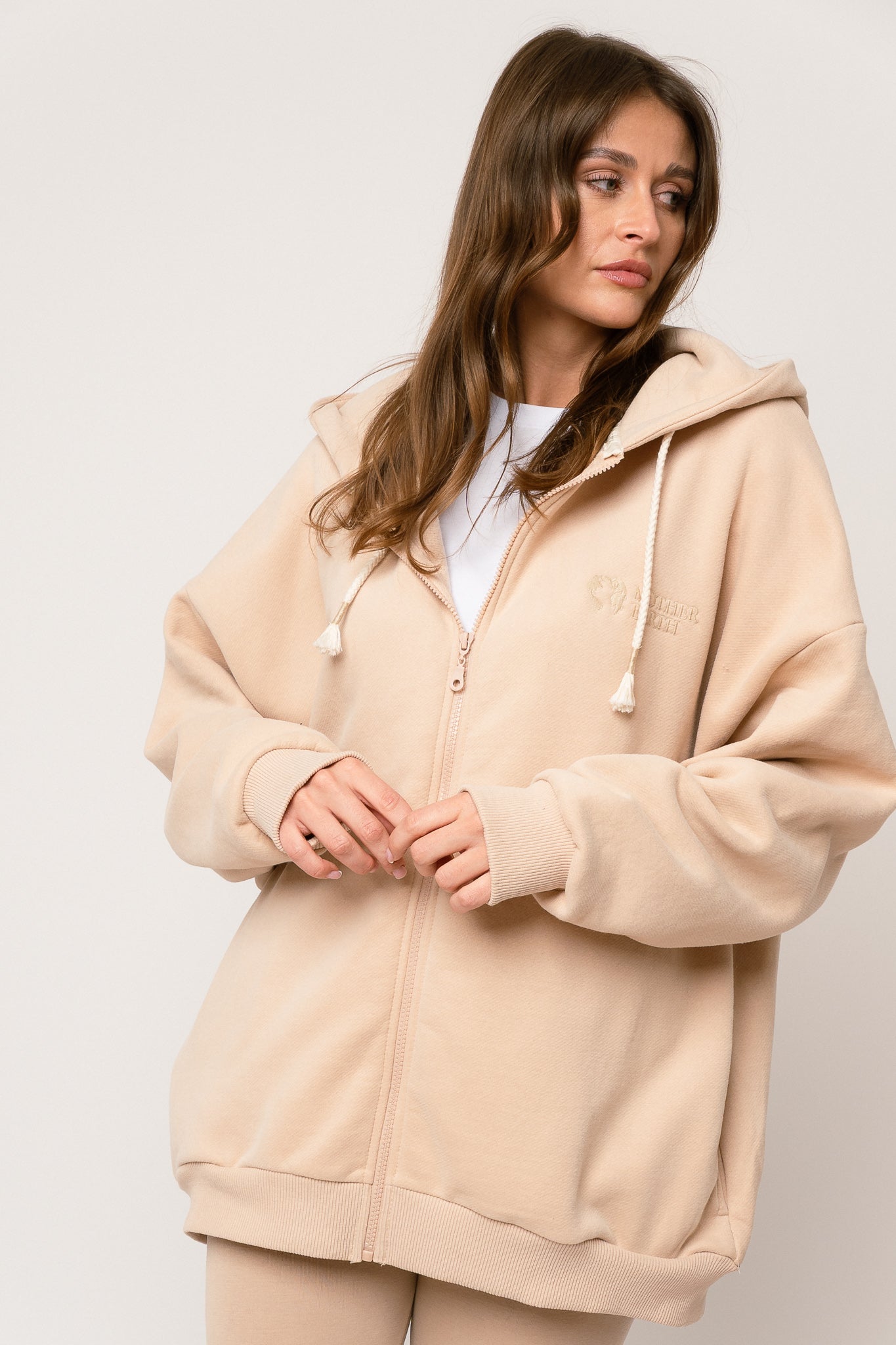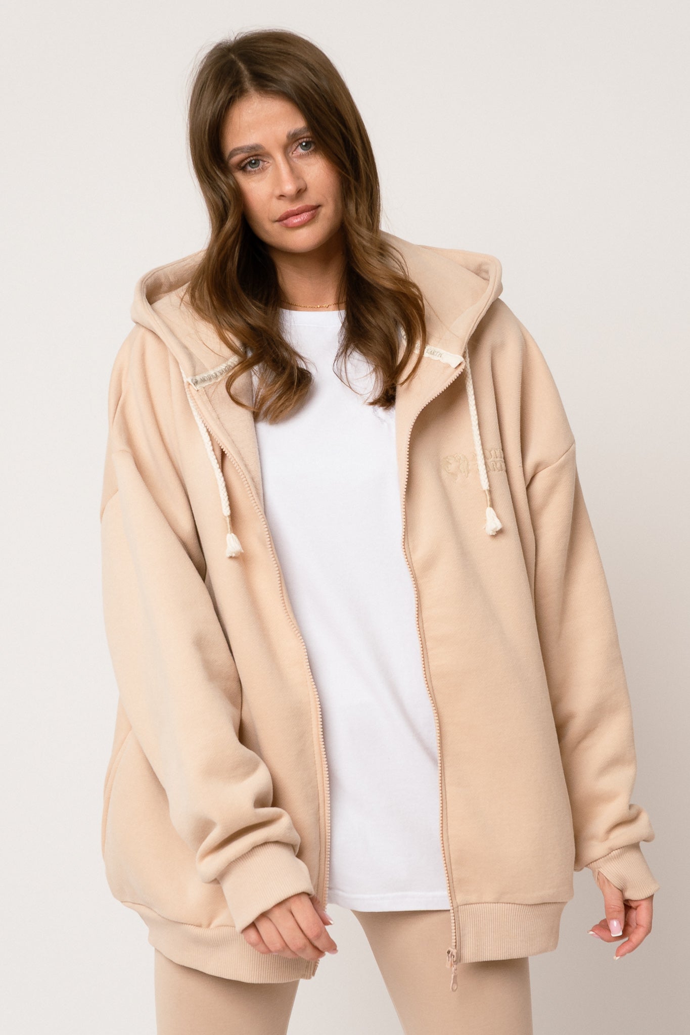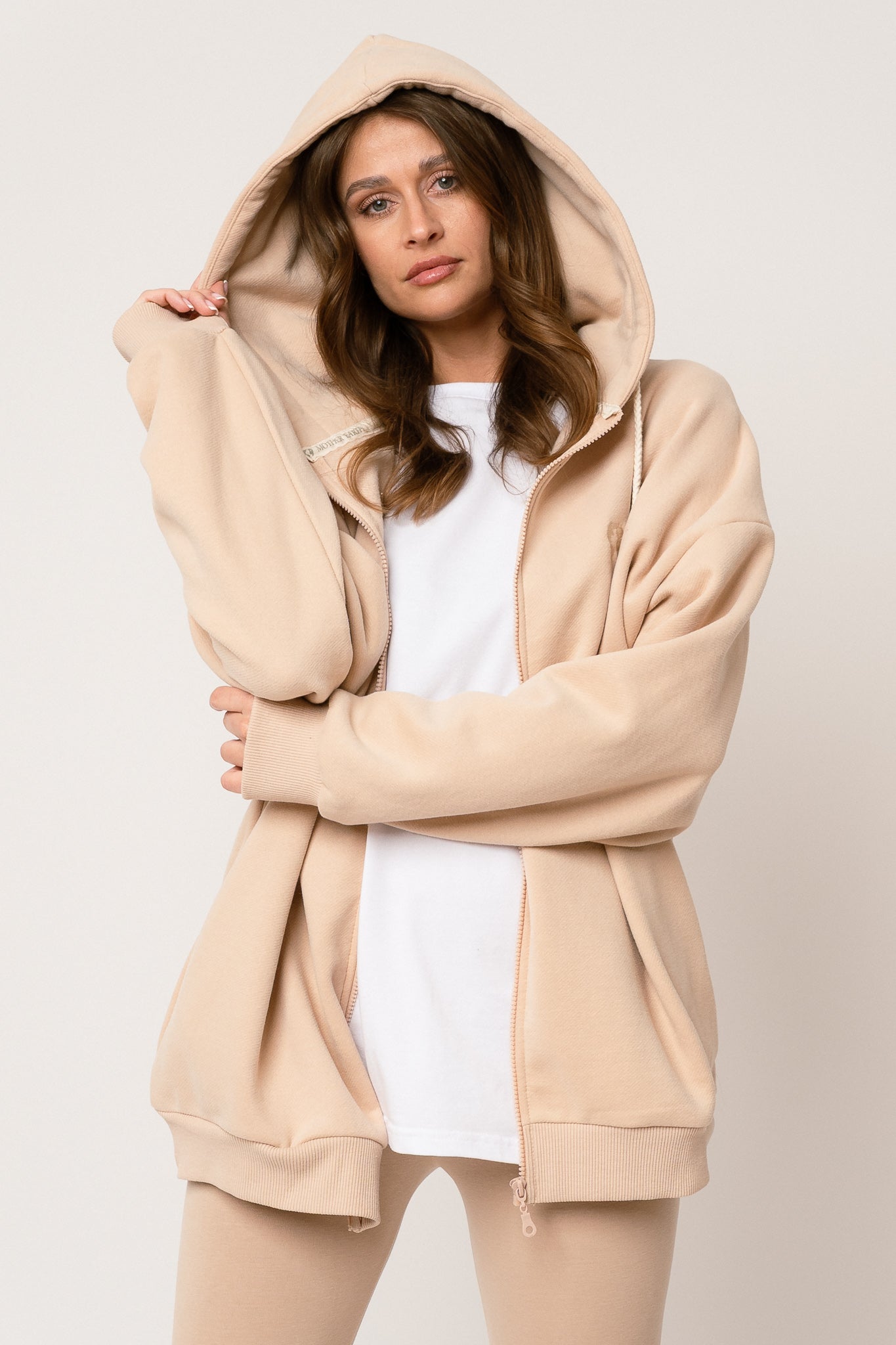 BLUZA Z KAPTUREM ROZPINANA BEŻOWA - NIKO