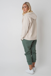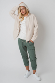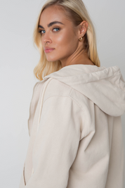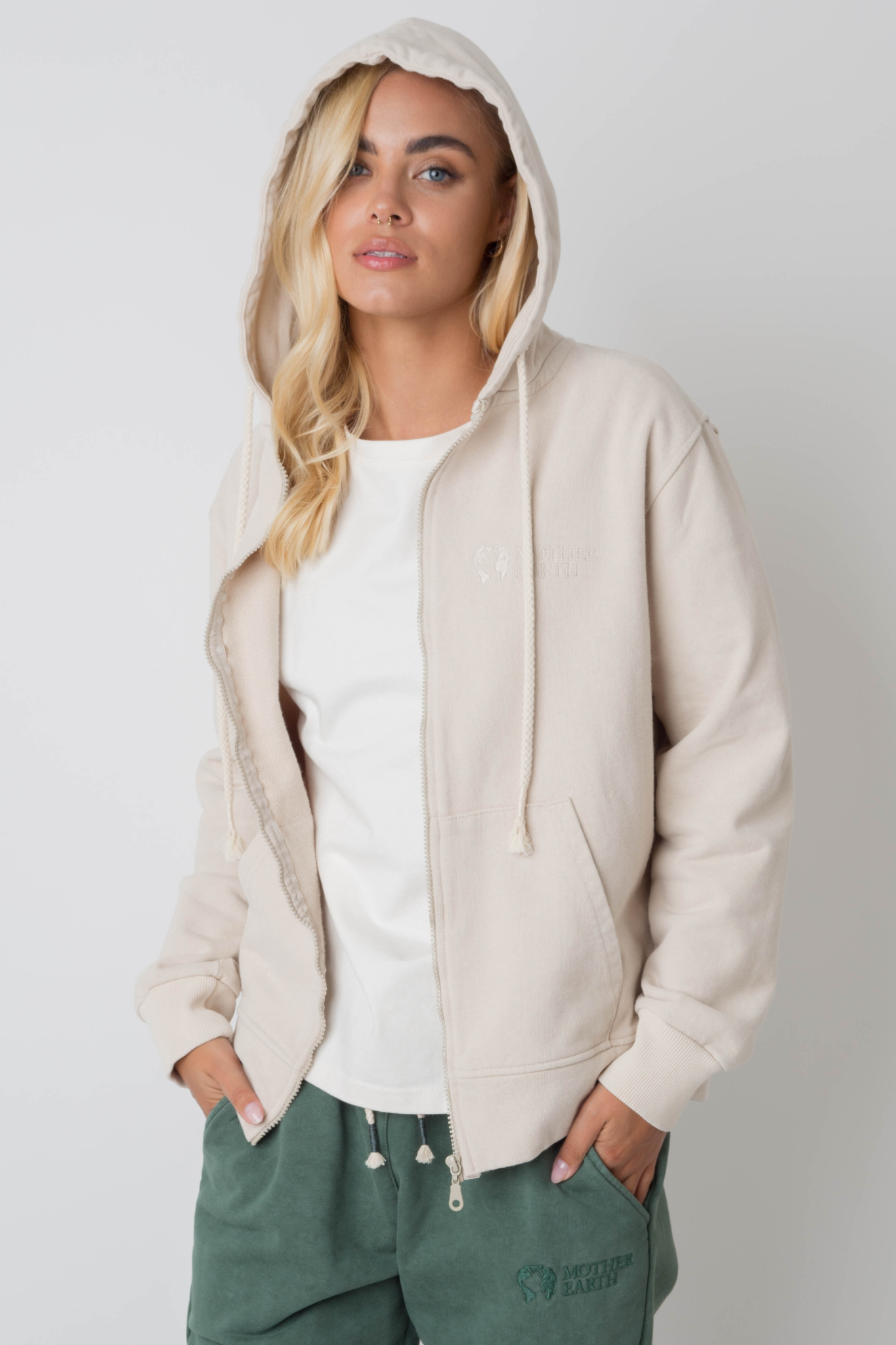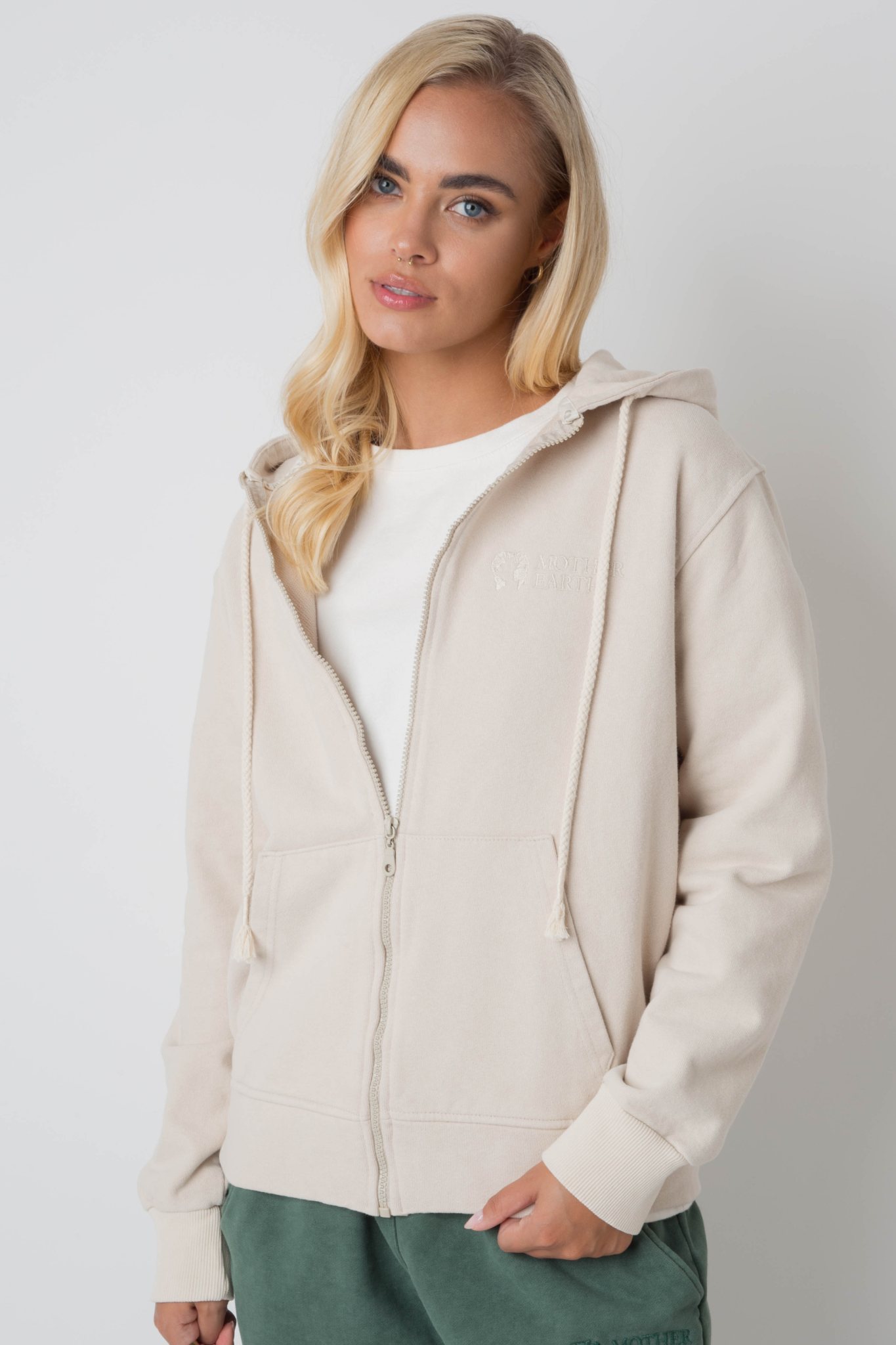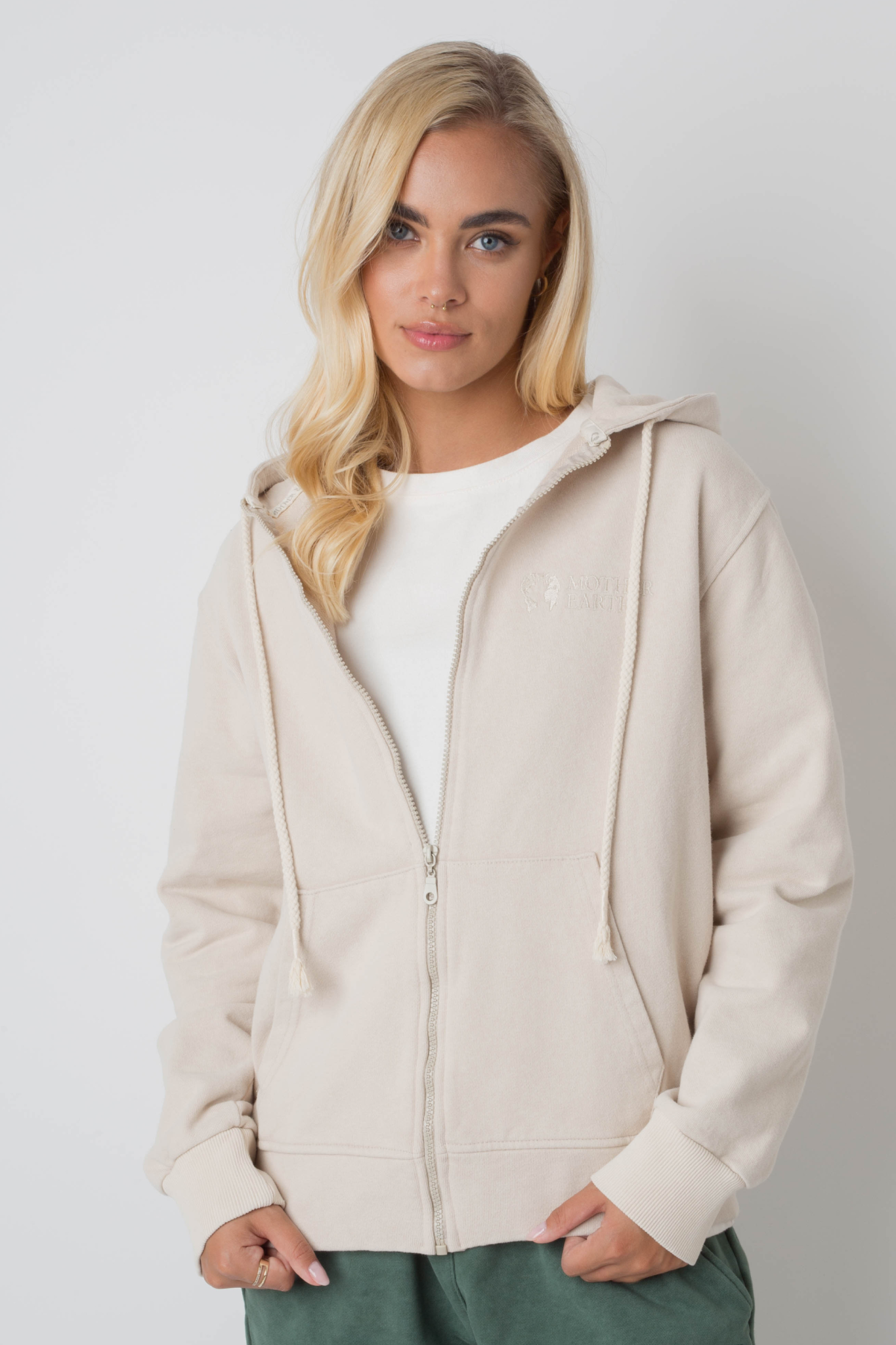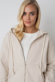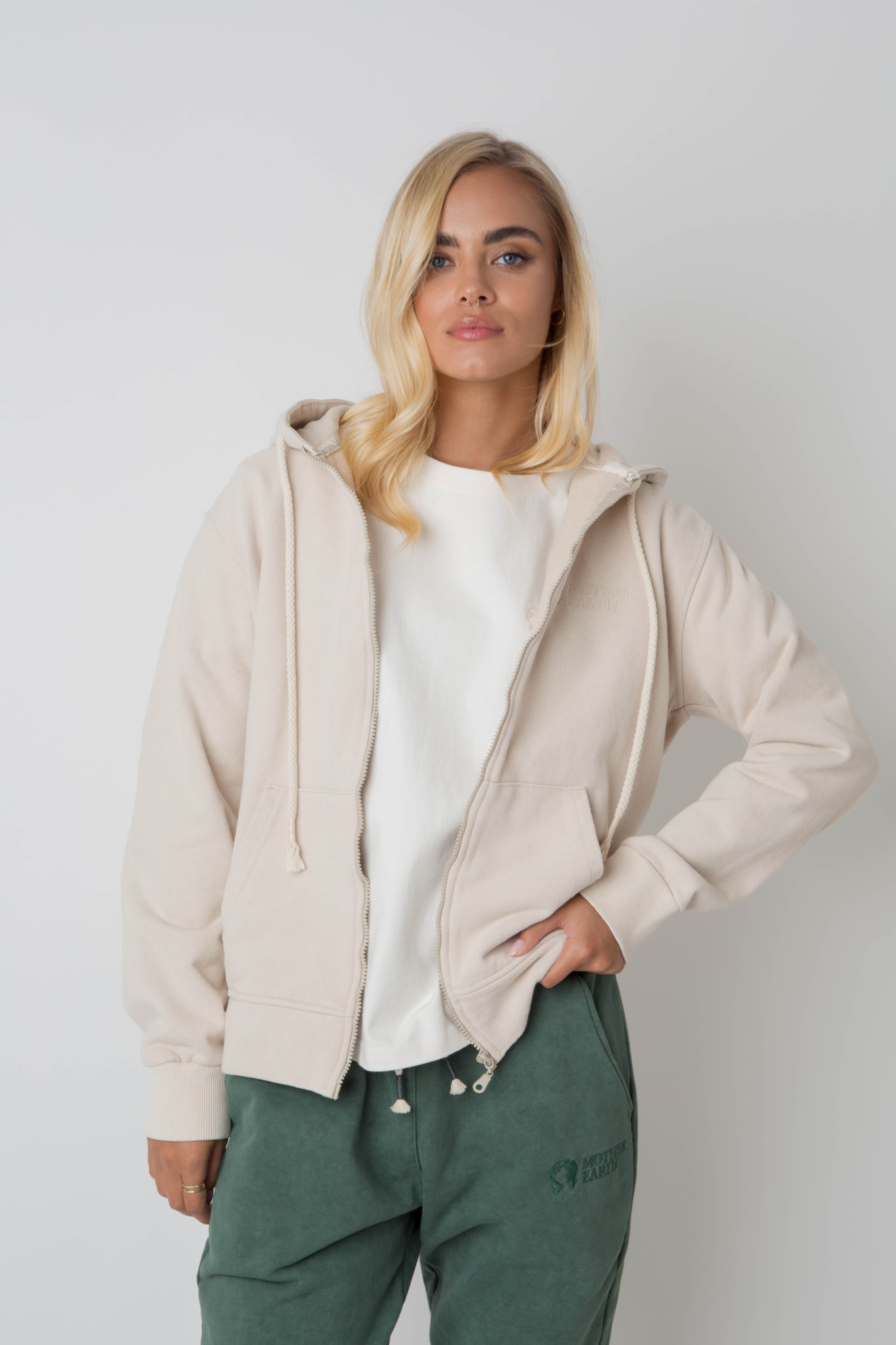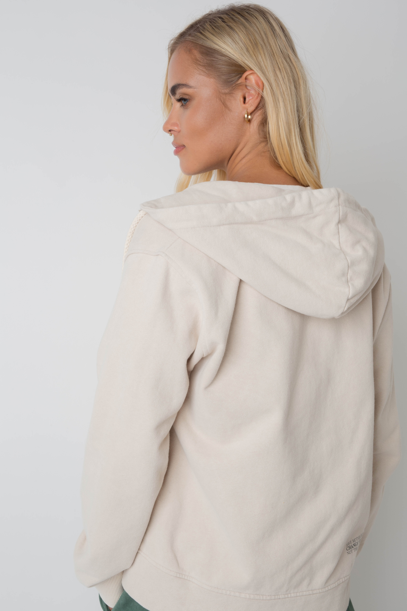 ROZPINANA BLUZA Z KAPTUREM Z EFEKTEM WASHED BEŻOWA - DELTA
