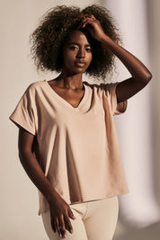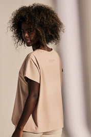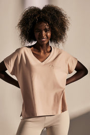T-SHIRT W SEREK Z ROZCIĘCIAMI NA BOKACH BEŻOWY - PENANG