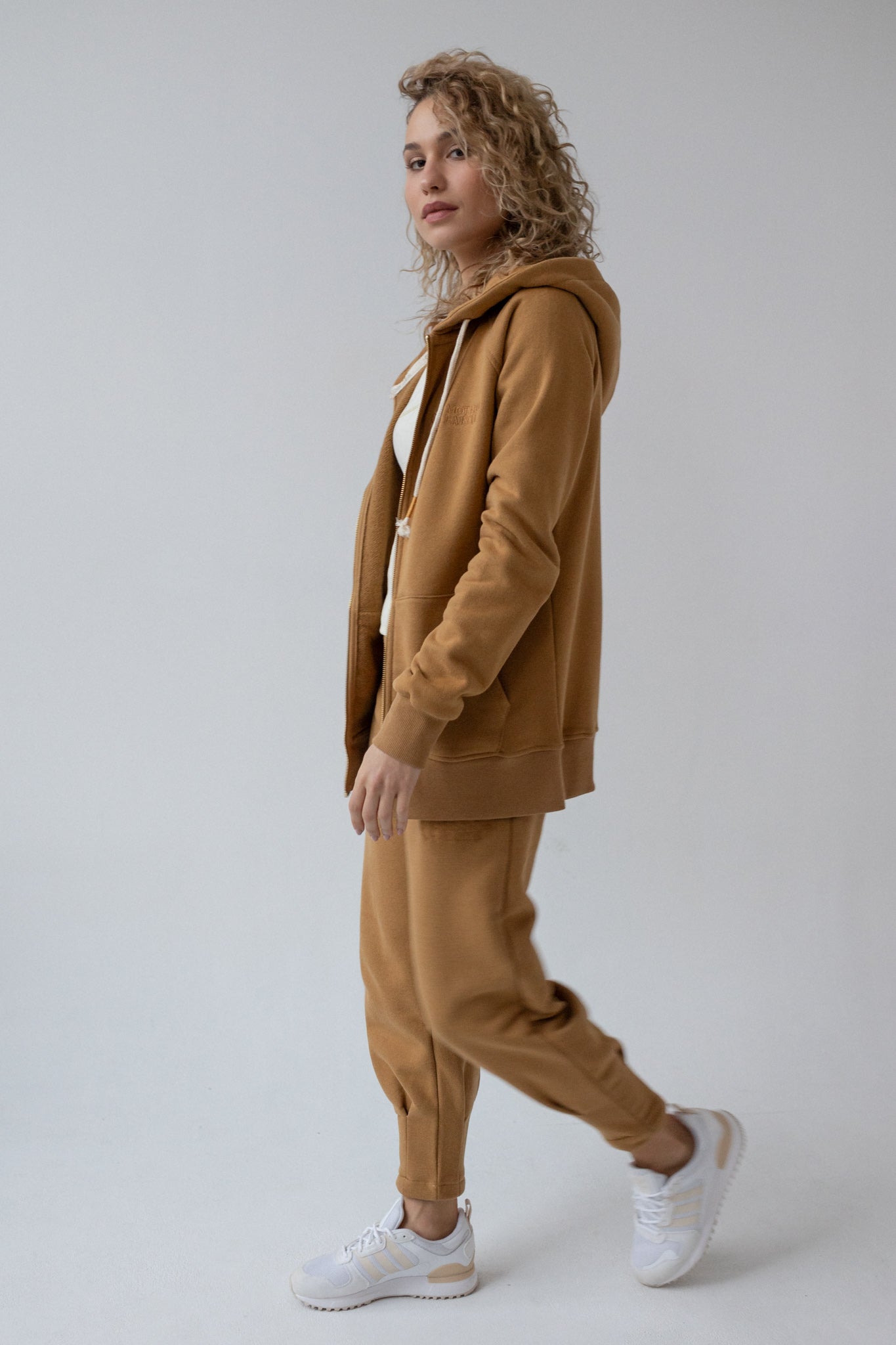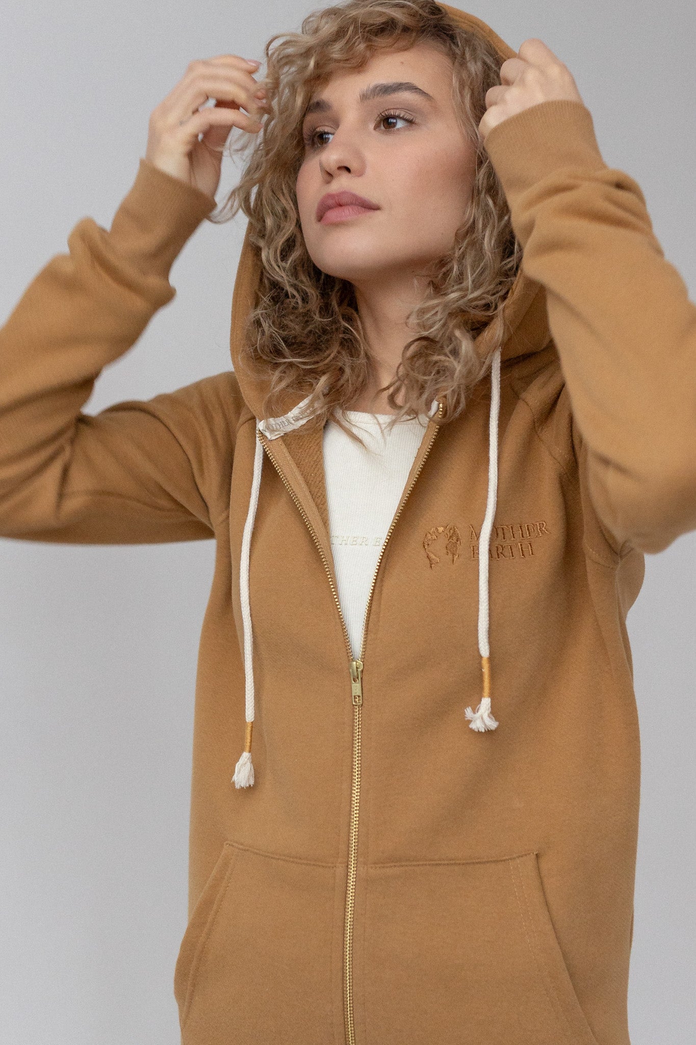 BLUZA ROZPINANA Z KAPTUREM JASNOBRĄZOWA - ARINA