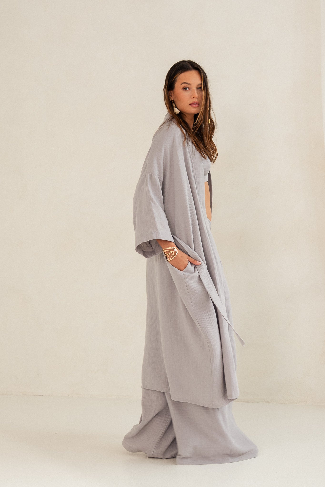 GRAY MUSLIN KIMONO - DION
