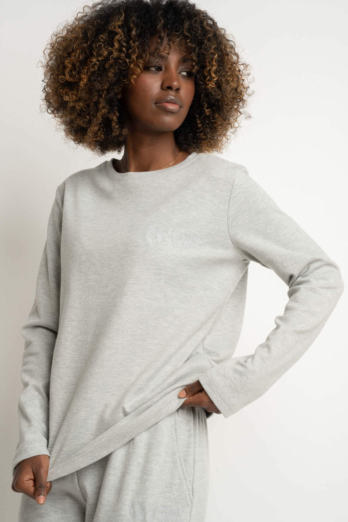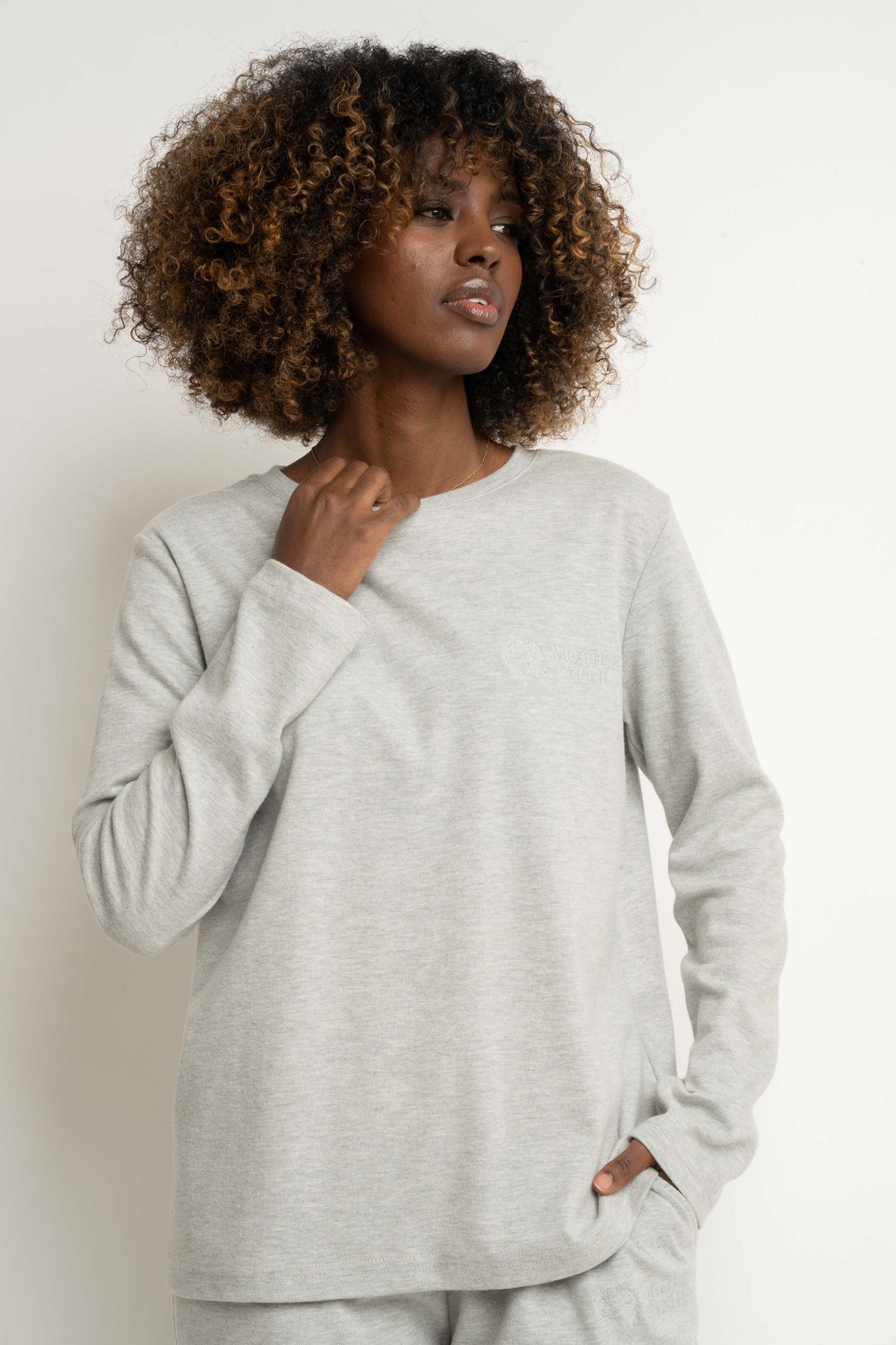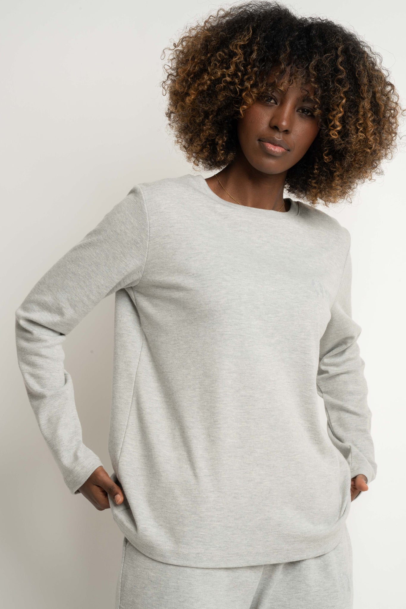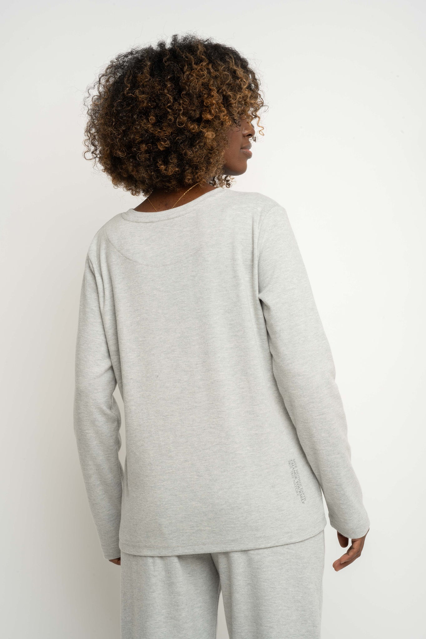 KNITTED LONG-SLEEVE BLOUSE, GREY MELANGE - KANDY