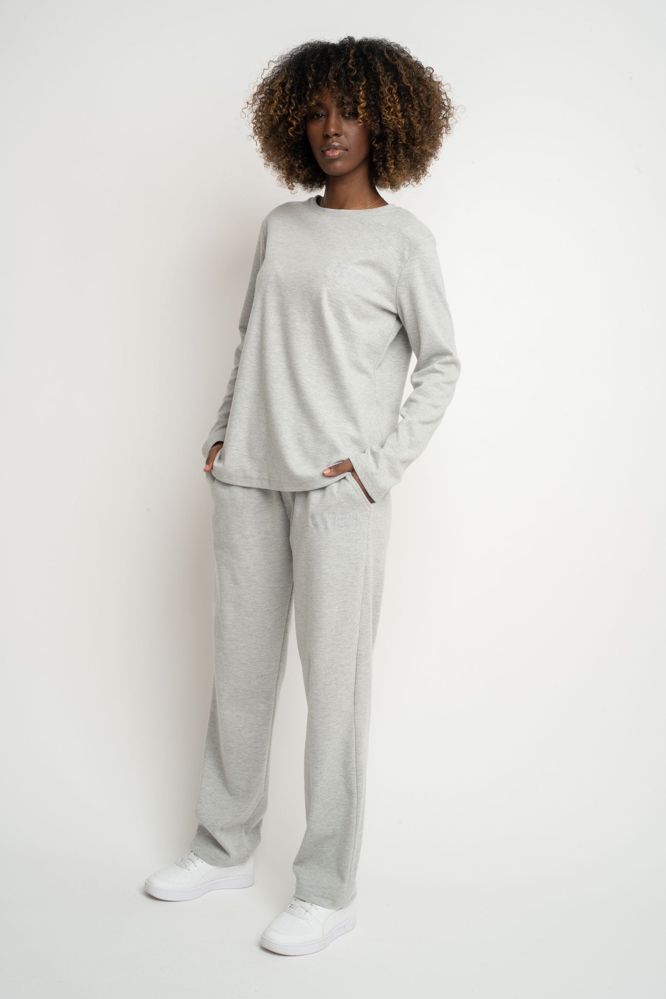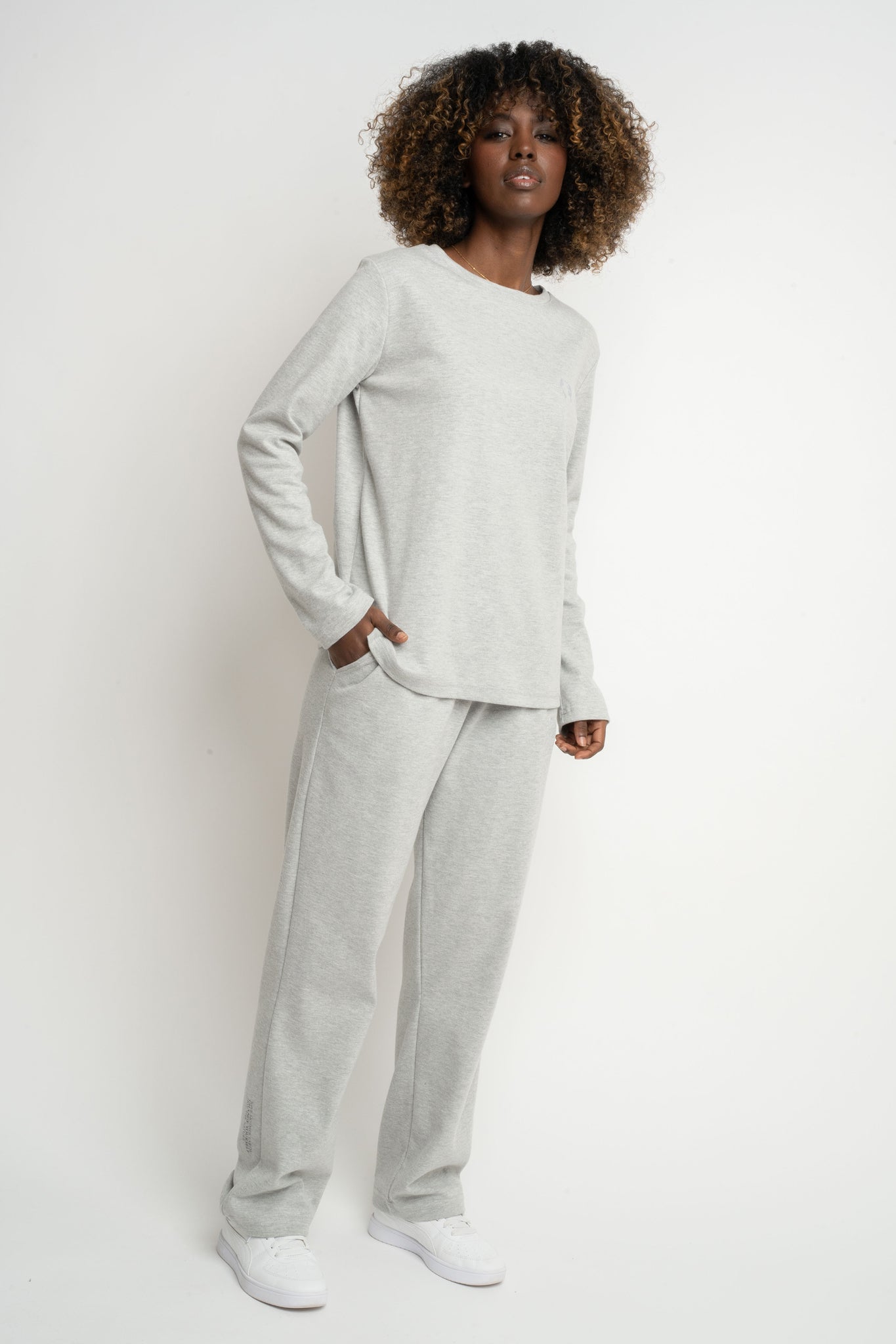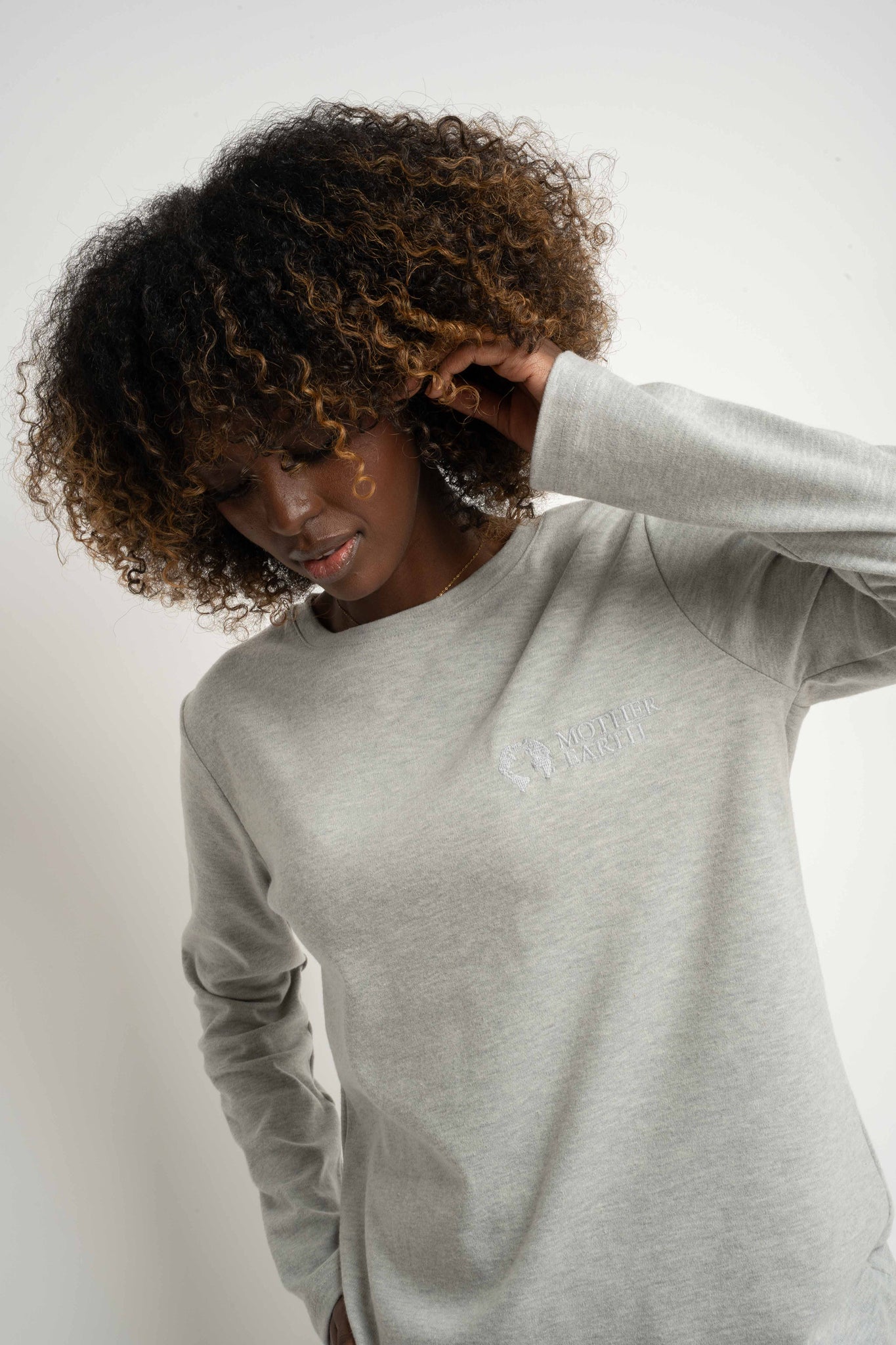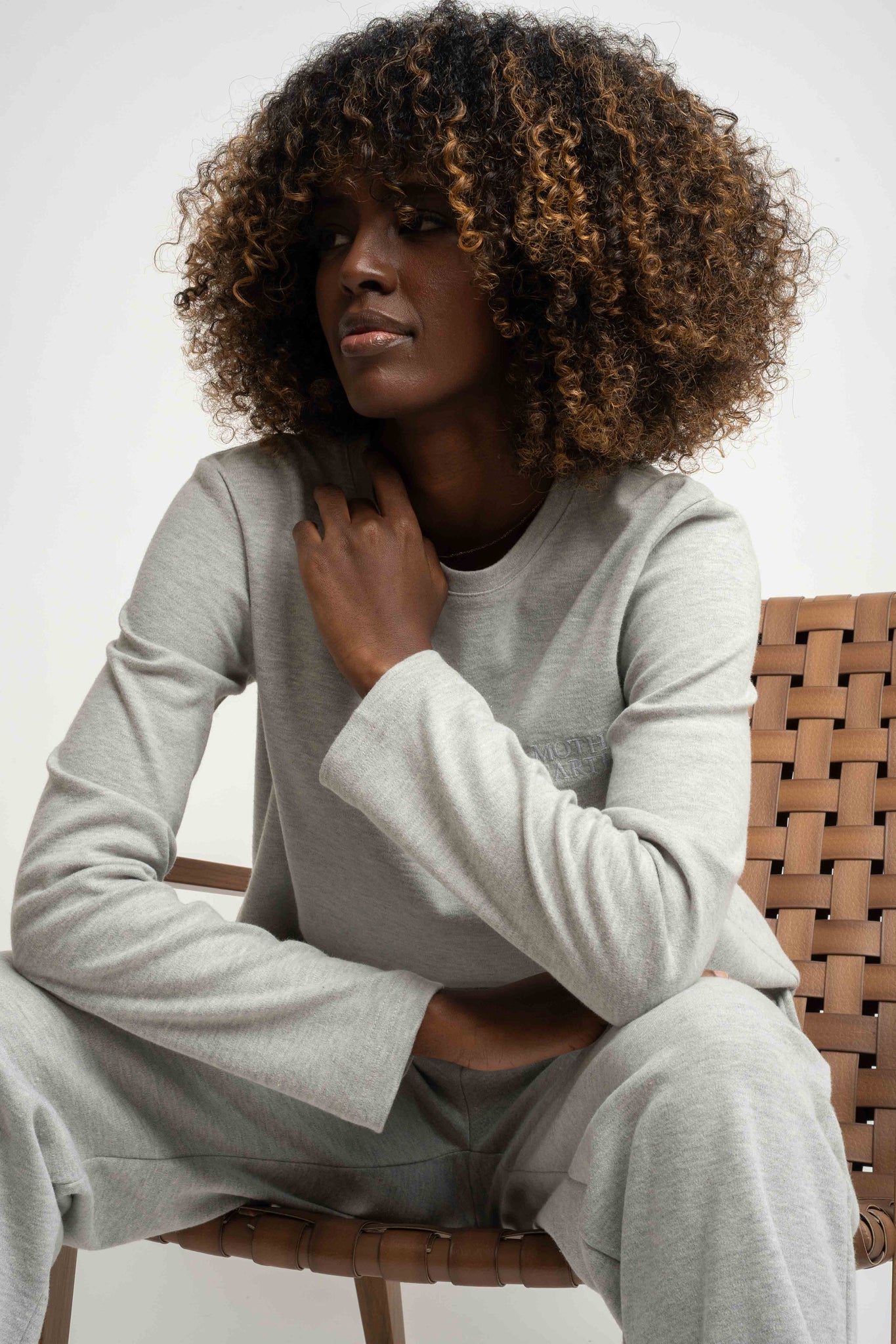 KNITTED LONG-SLEEVE BLOUSE, GREY MELANGE - KANDY