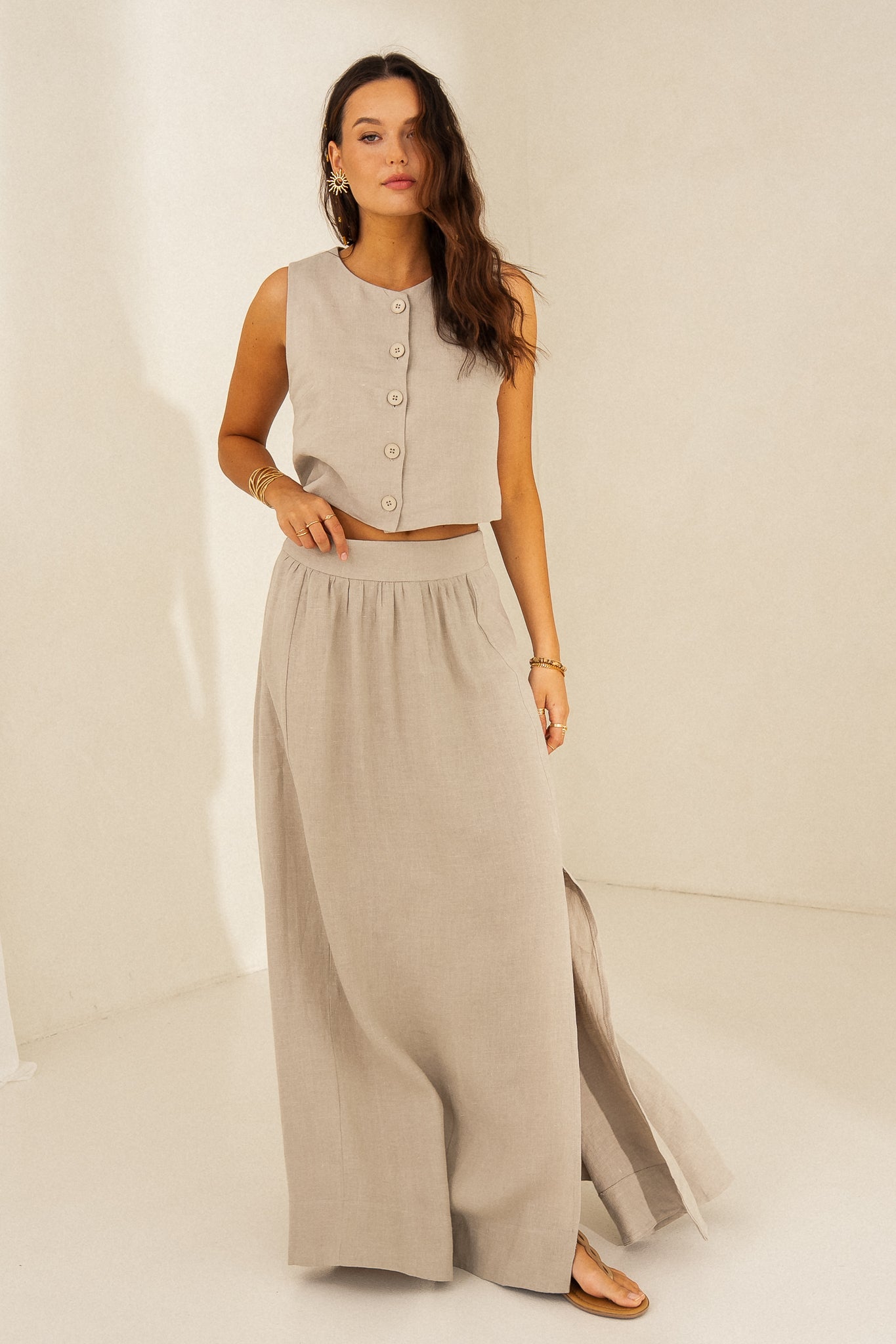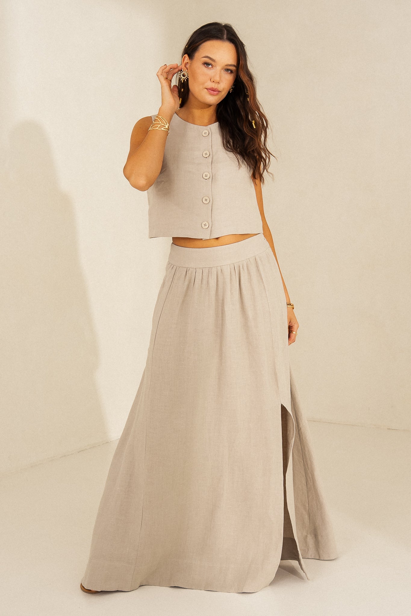 BEIGE LINEN SKIRT - LIPSI