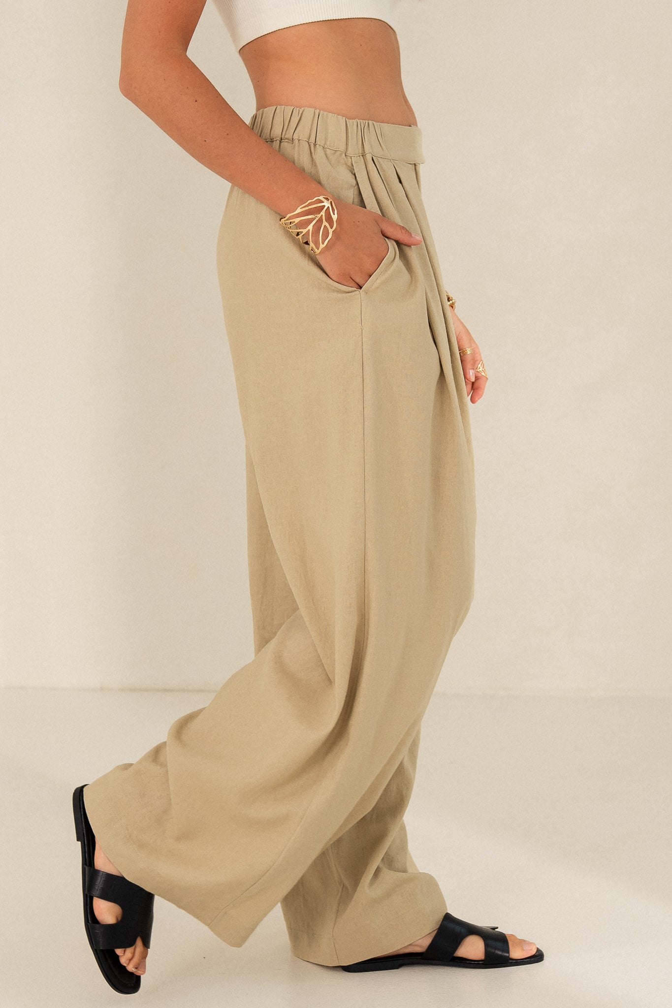 These women's linen trousers are a versatile staple for your summer wardrobe - perfect for both everyday urban outfits and holiday outfits with a natural, relaxed style.