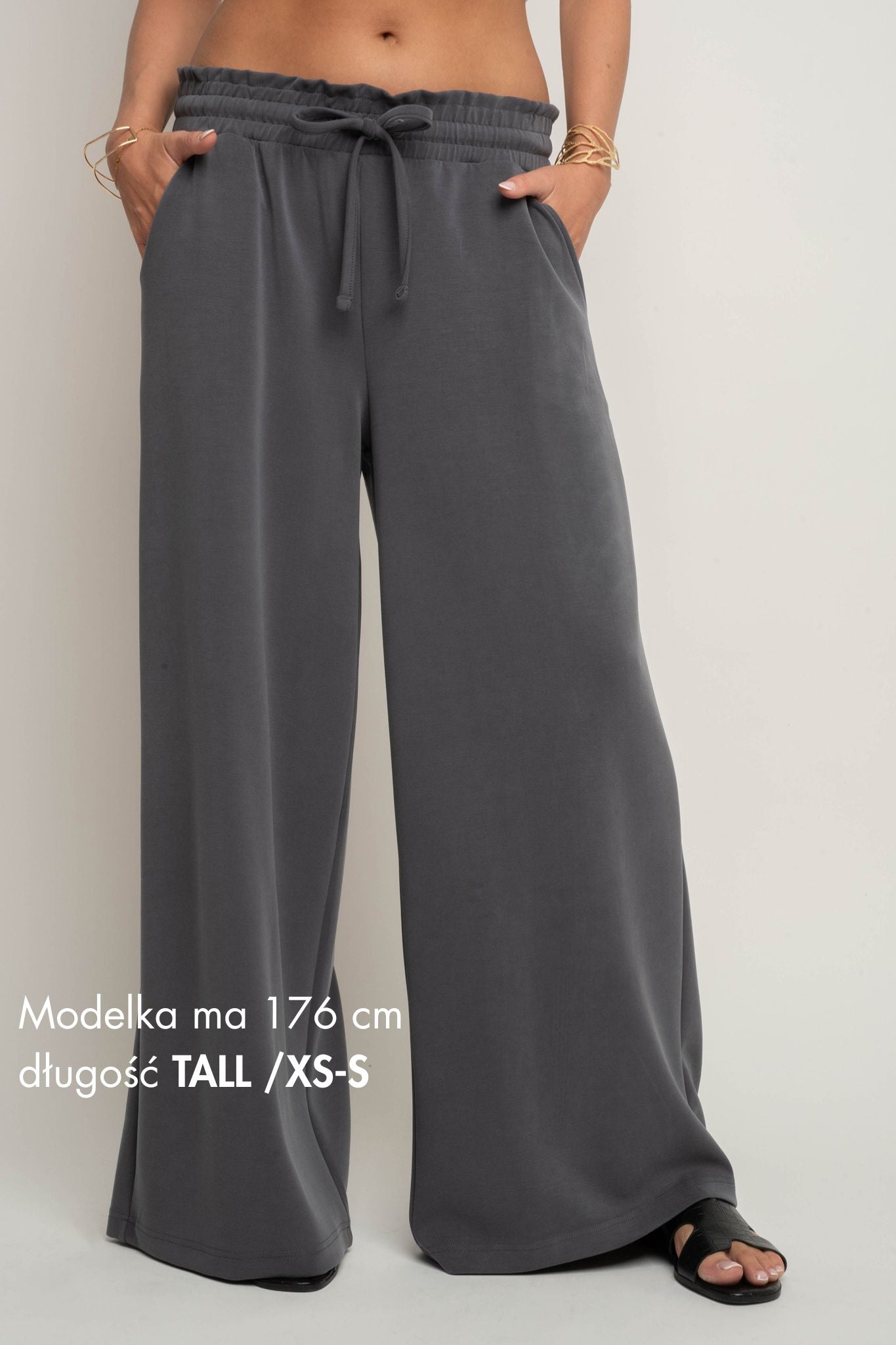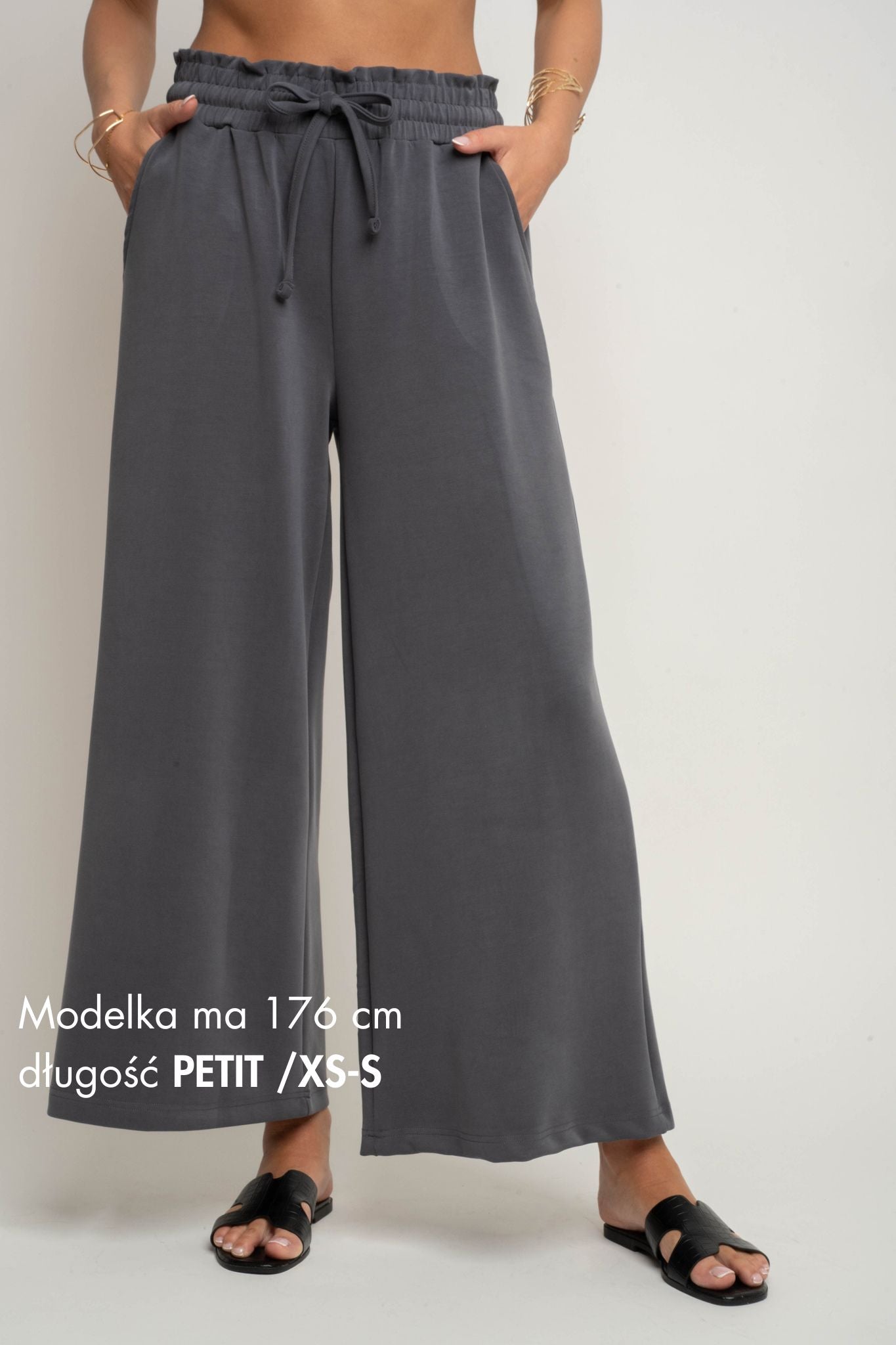 Model dostępny jest w dwóch długościach: TALL i PETIT, co pozwala idealnie dopasować spodnie do wzrostu i preferencji. Wersja TALL rekomendowana jest dla wyższych kobiet, natomiast PETIT dla niższych – choć warto dodać, że krótsza długość świetnie prezentuje się również na wyższych sylwetkach, tworząc modny efekt długości 7/8. To rozwiązanie pozwala lepiej dopasować długość spodni do wzrostu i indywidualnych preferencji.