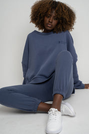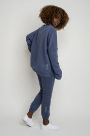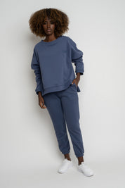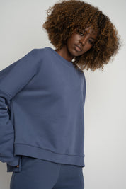 REGULAR FIT SWEATSHIRT WITH LONG BACK NAVY BLUE - COOK