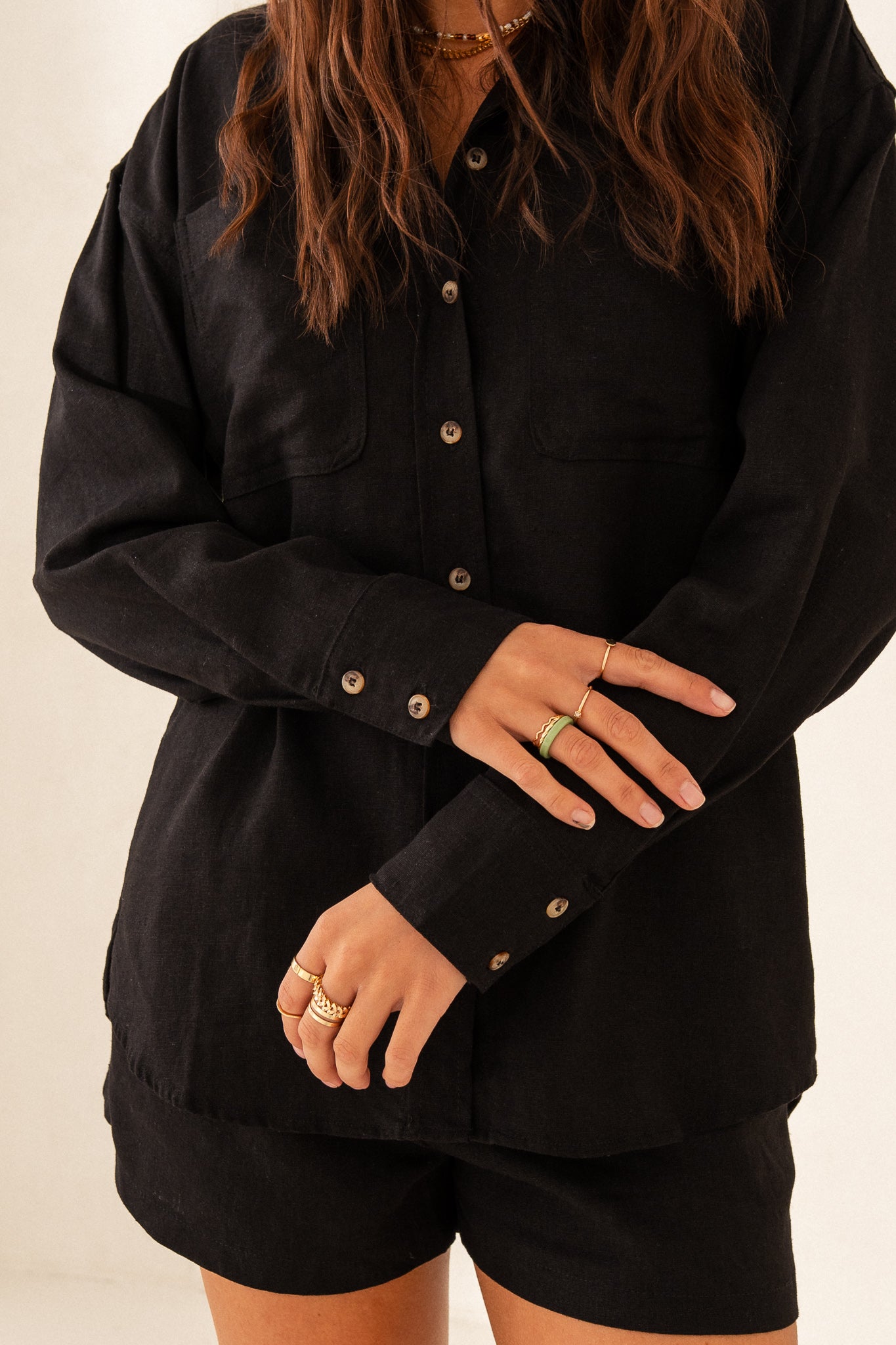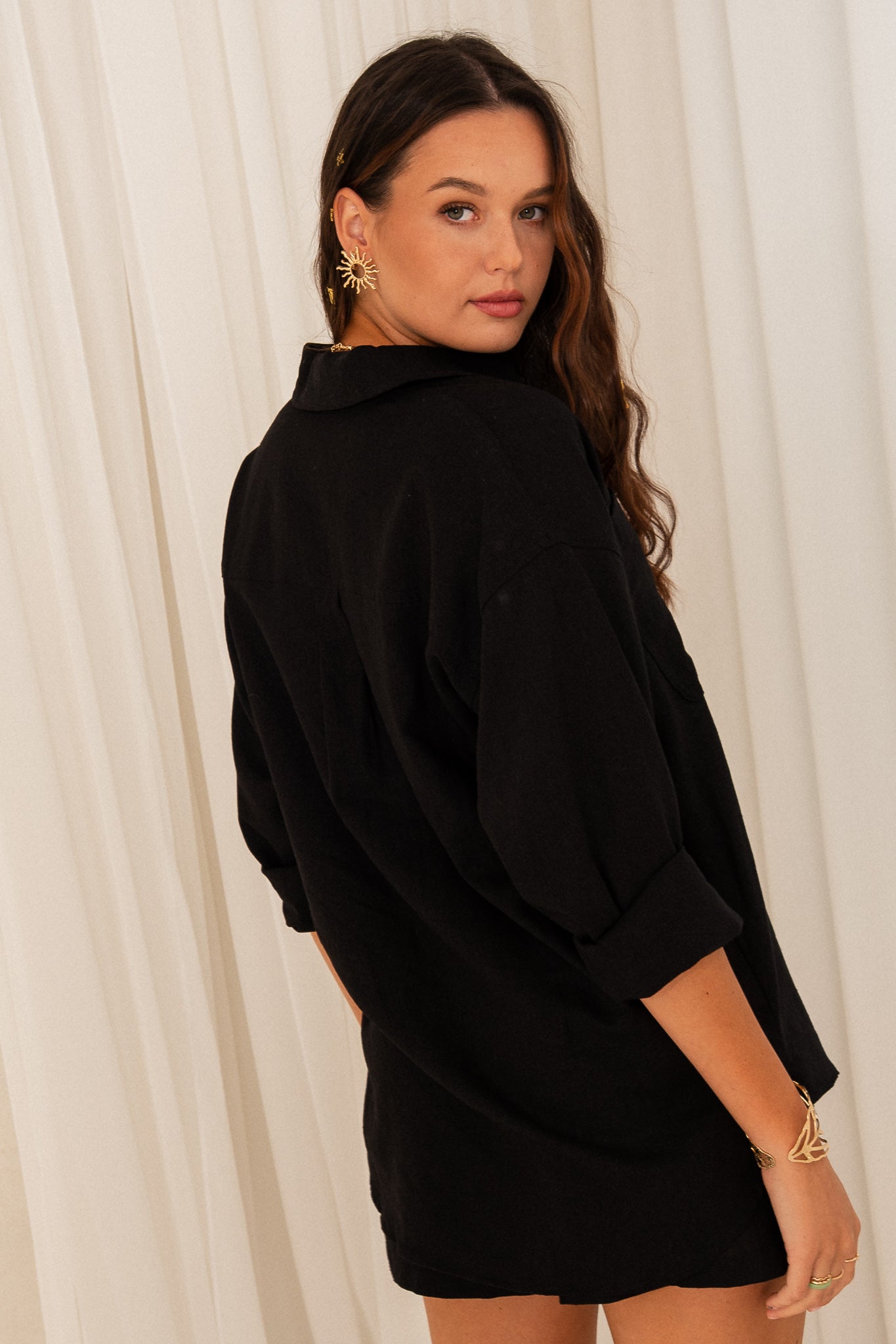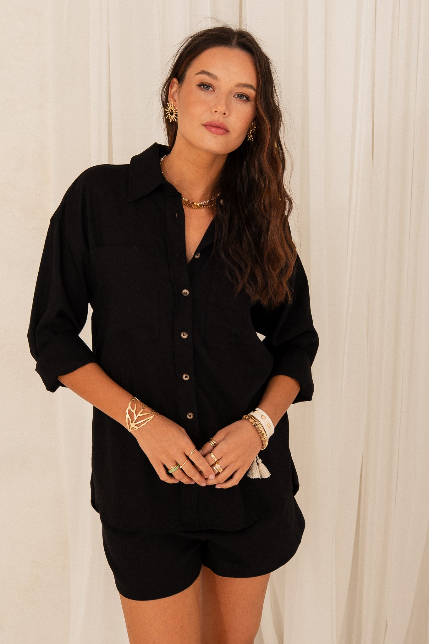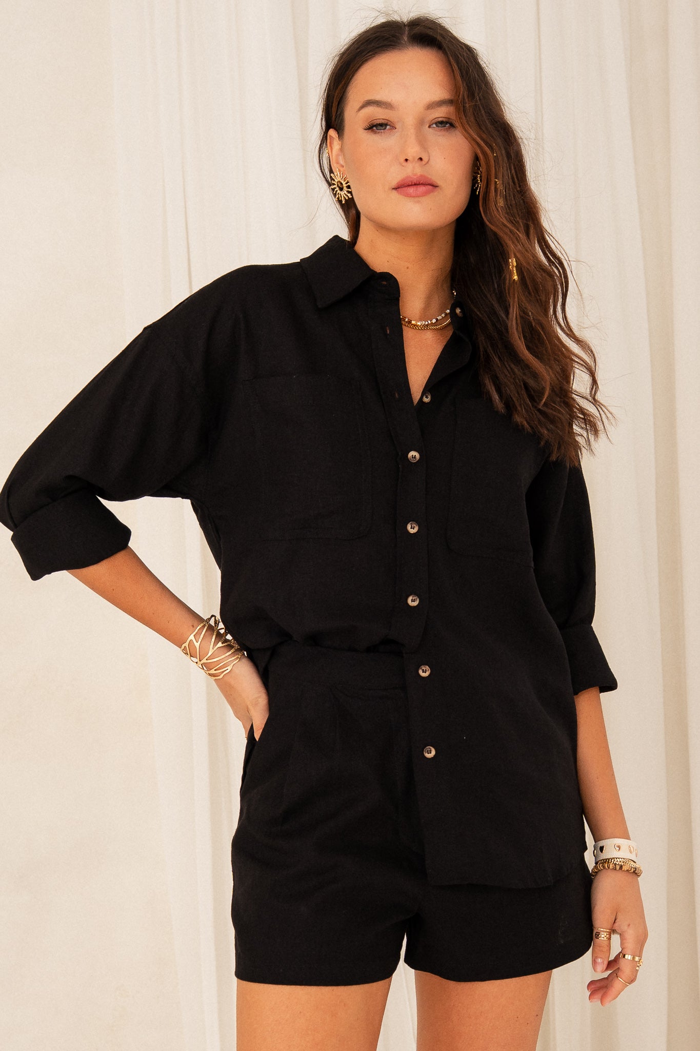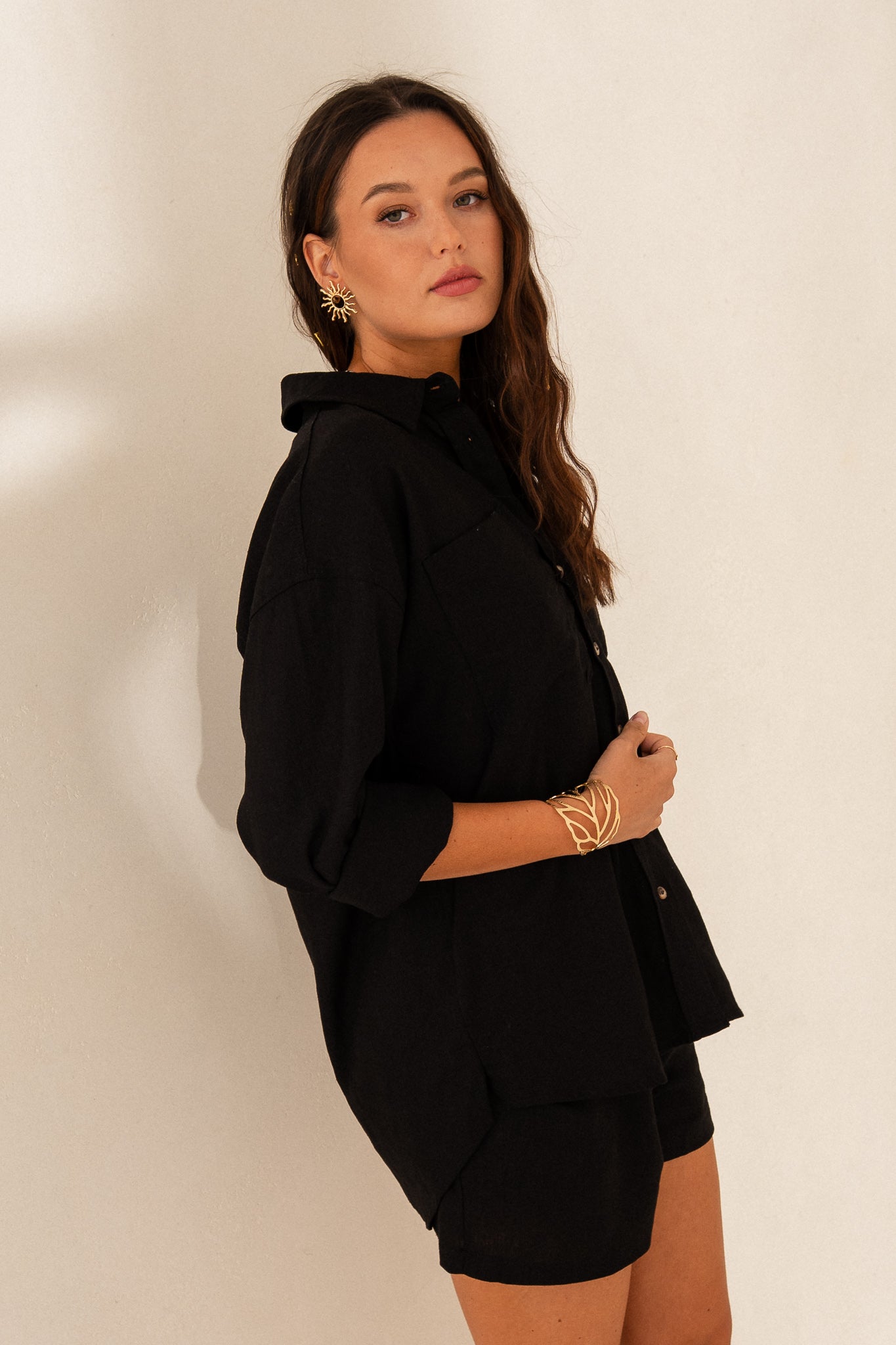 BLACK LINEN SHIRT - KALAMOS
