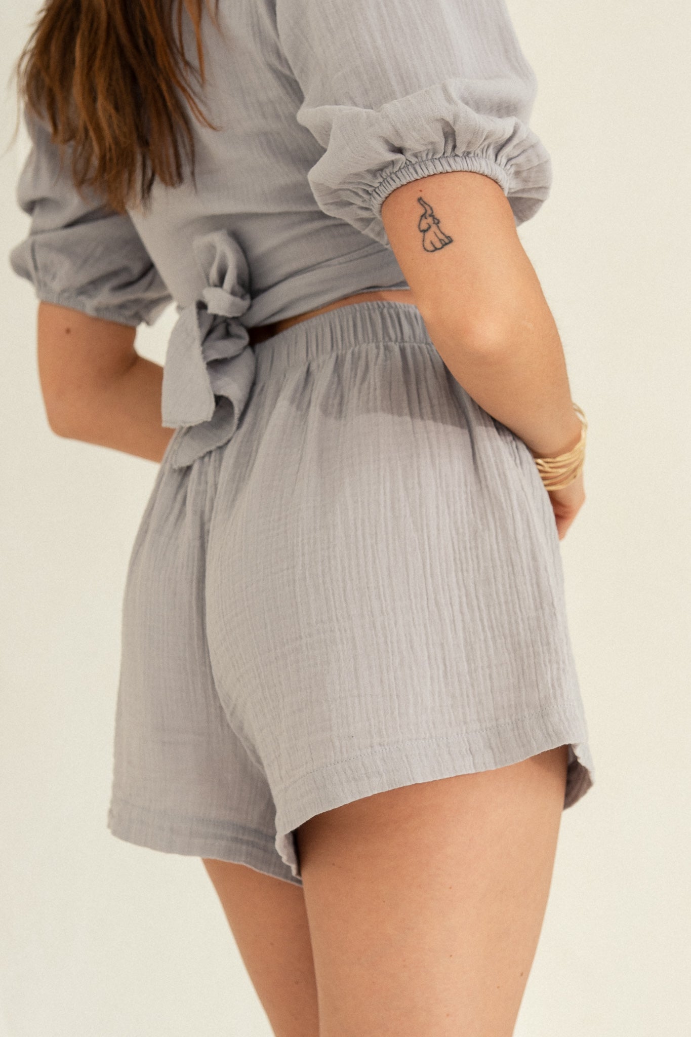 URANIA women's cotton muslin shorts are the essence of summer comfort and natural simplicity. Made of 100% high-quality cotton muslin, they envelop the skin in softness and lightness, allowing it to breathe freely even in the hottest weather.
