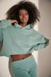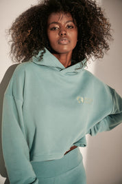 SHORT LOOSE FIT HOODED SWEATSHIRT TURQUOISE - DELOS