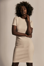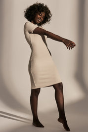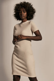 FITTED DRESS WITH SHORT SLEEVES LIGHT BEIGE - SKIN