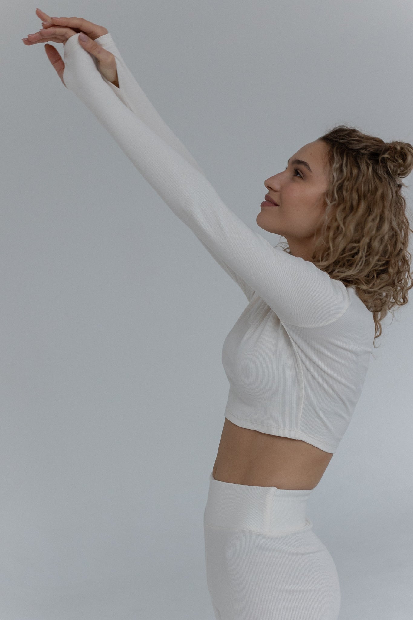 SHORT FITTED RIBBED CROP TOP ECRU - SAHARA