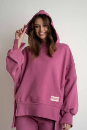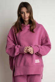 OVERSIZE HOODED SWEATSHIRT WITH SIDE SLOTS FUCHSIA - HOLA