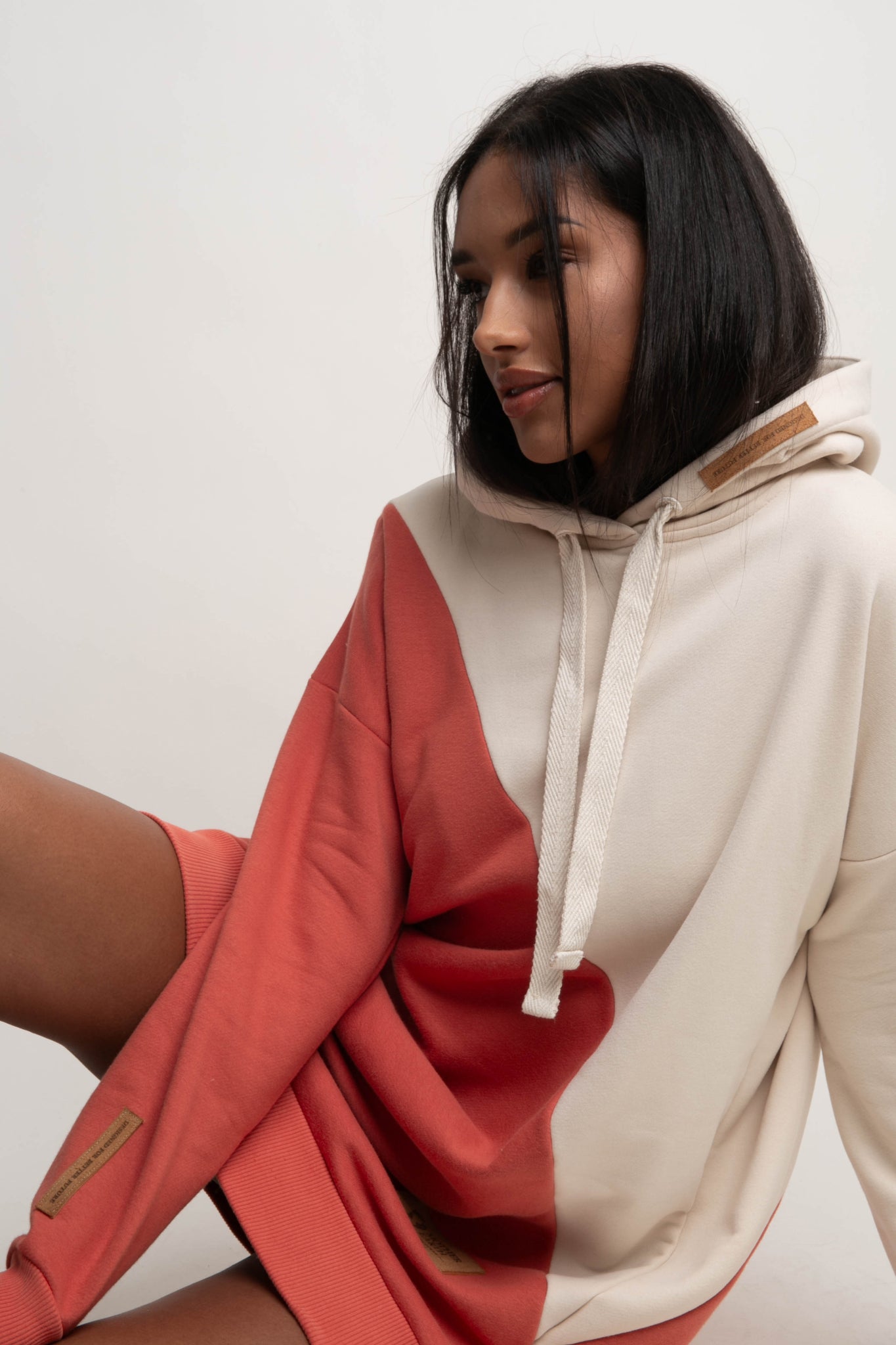 SALAMINA - LONG OVERSIZE HOODED SWEATSHIRT ORANGE