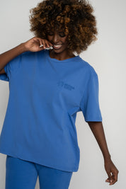 WOMEN'S CORNFLOWER BLUE T-SHIRT - OYSTER
