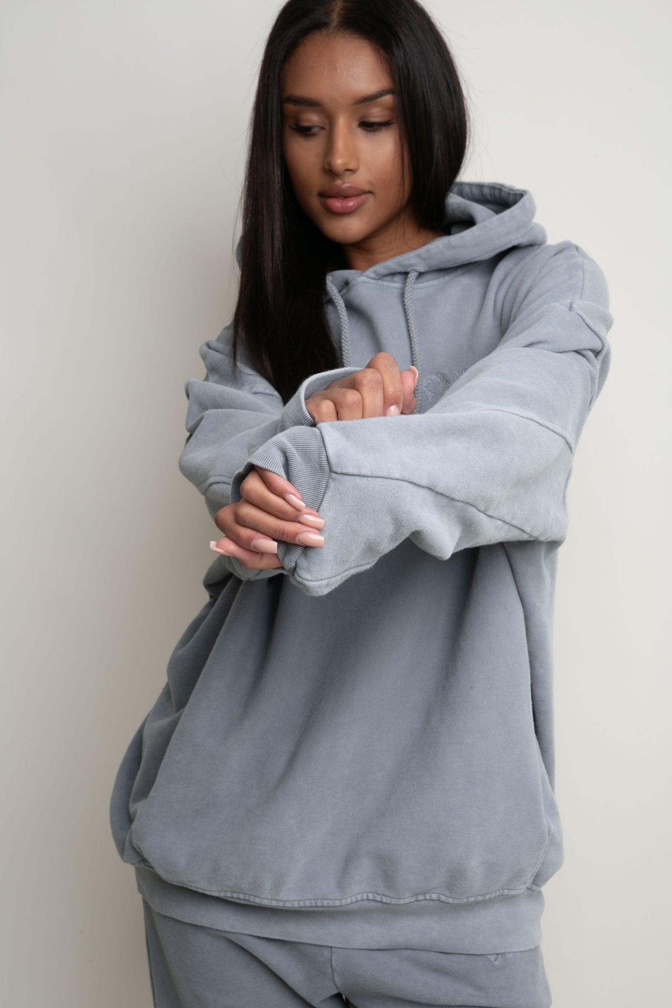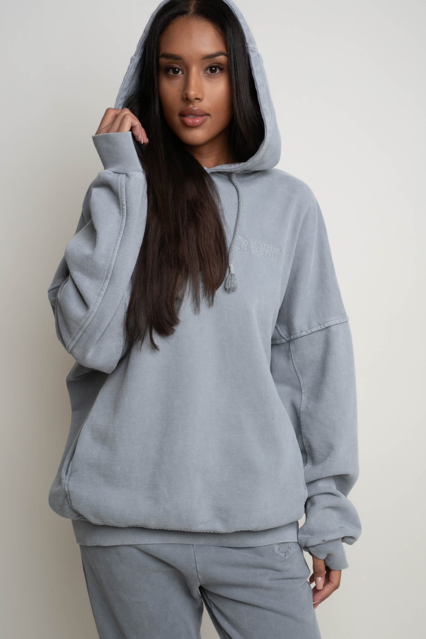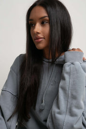 OVERSIZE HOODED SWEATSHIRT WITH WASHED EFFECT GREY - EGERIA