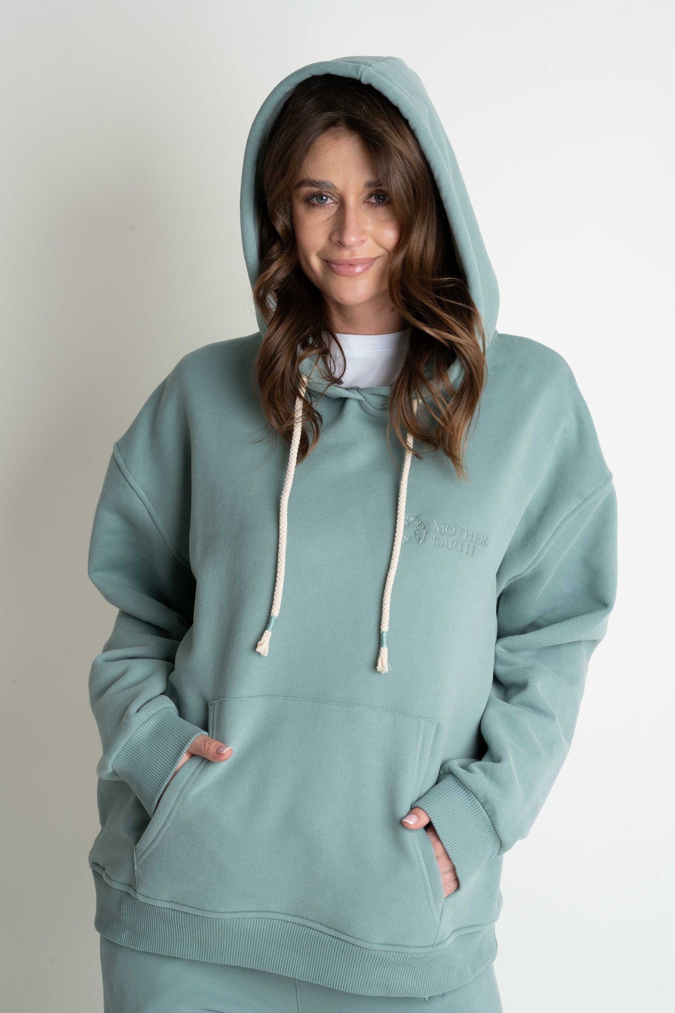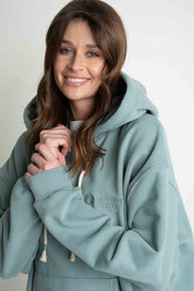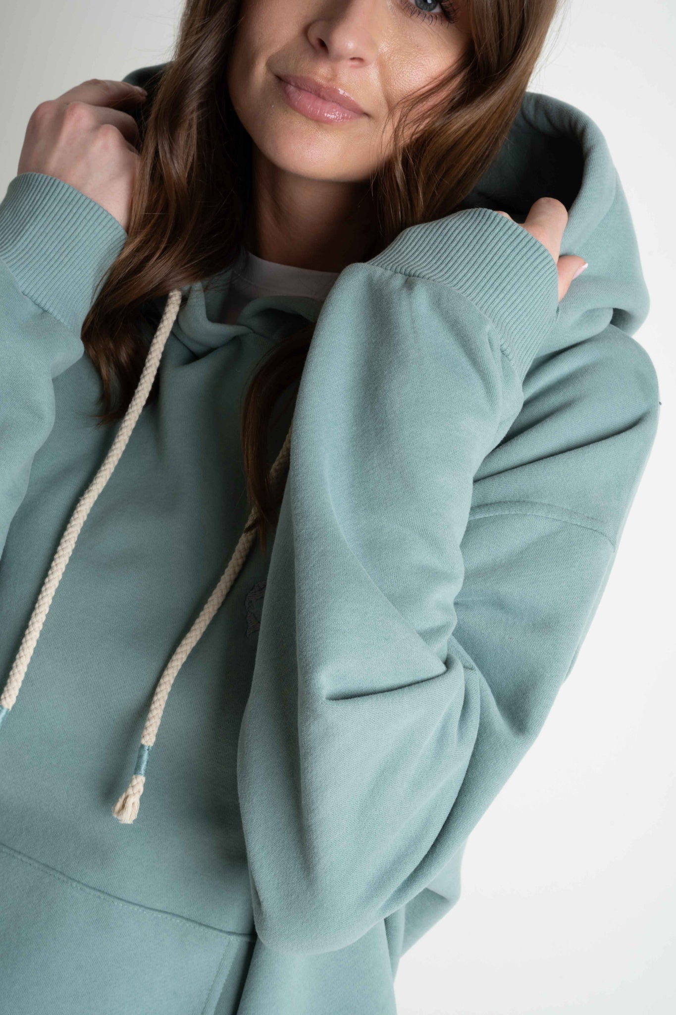 BLUZA Z KAPTUREM TURKUSOWA - MOHELI