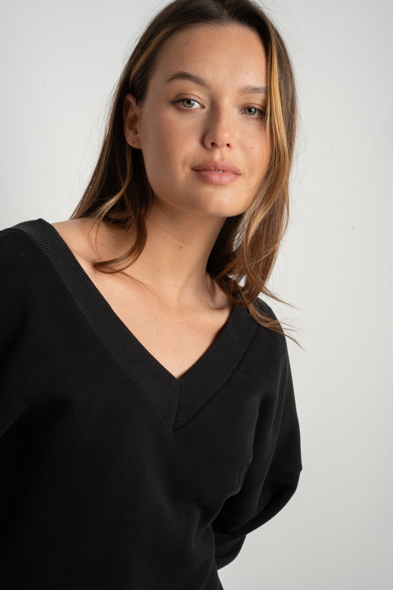 BLUZA Z DEKOLTEM OVERSIZE CZARNA - BISCOE