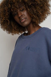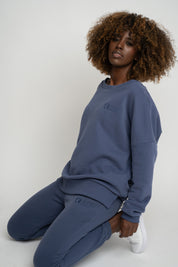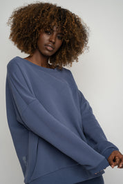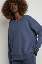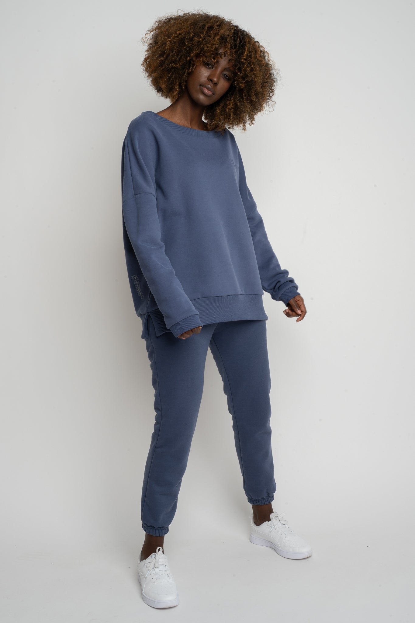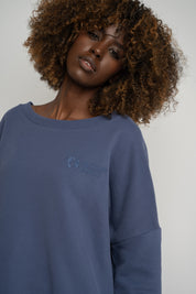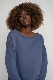 BLUZA OVERSIZE Z SZEROKIM DEKOLTEM GRANATOWA - MULL