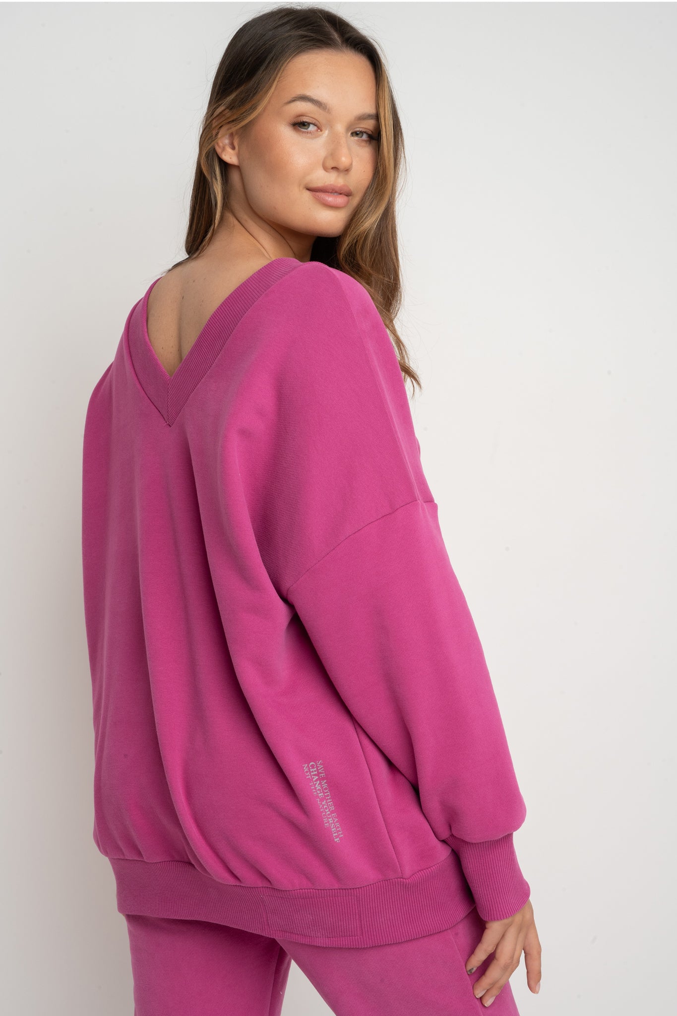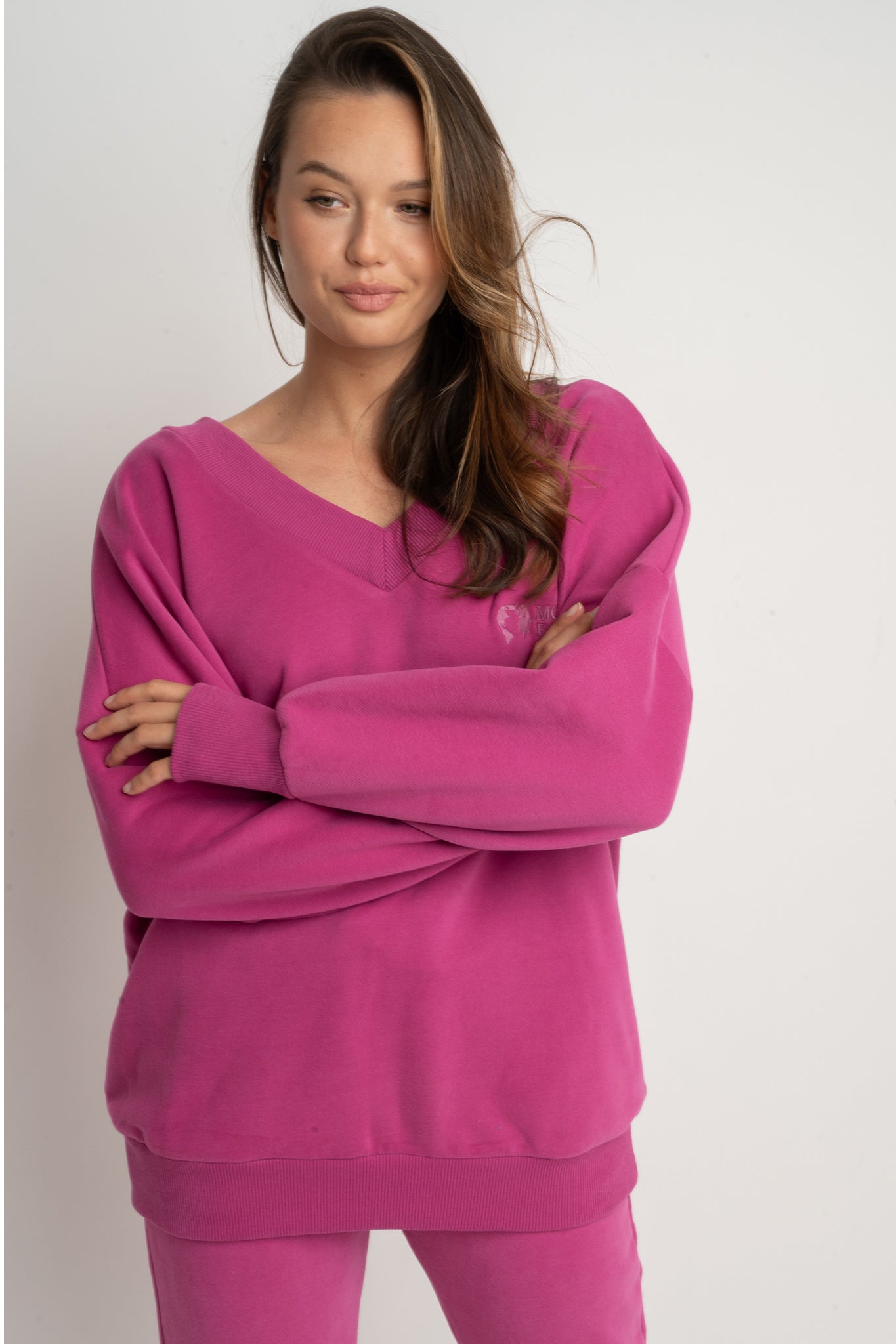 BLUZA Z DEKOLTEM OVERSIZE RÓŻOWA - BISCOE