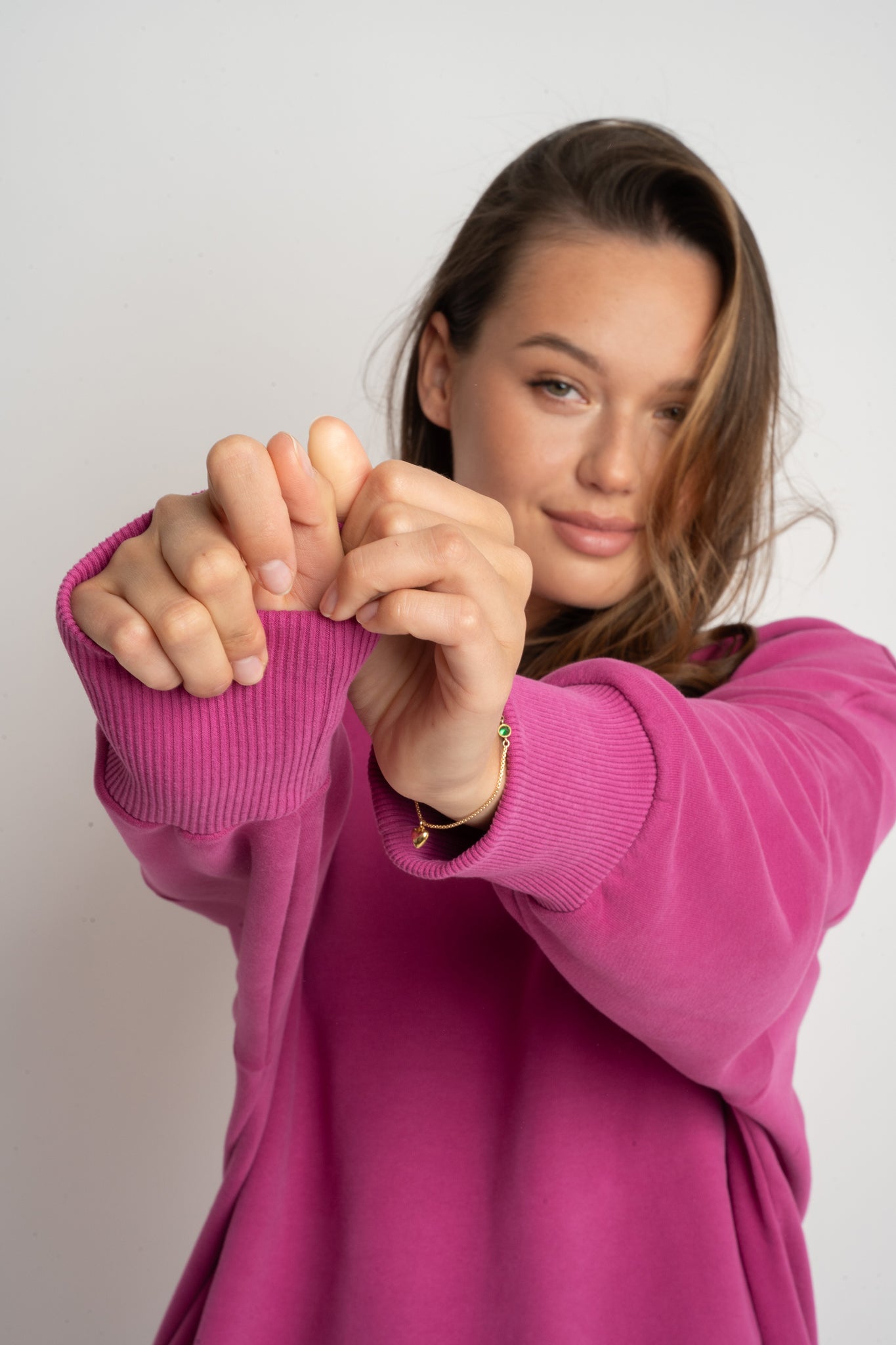 Bluza uszyta jest z naszej flagowej, grubej dzianiny, która nas wyróżnia. Jest ona gładka, ale przy tym bardzo mięsista. Od spodu posiada charakterystyczny splot diagonalny pokryty lekkim meszkiem, który w przyjemny sposób otula naszą skórę.