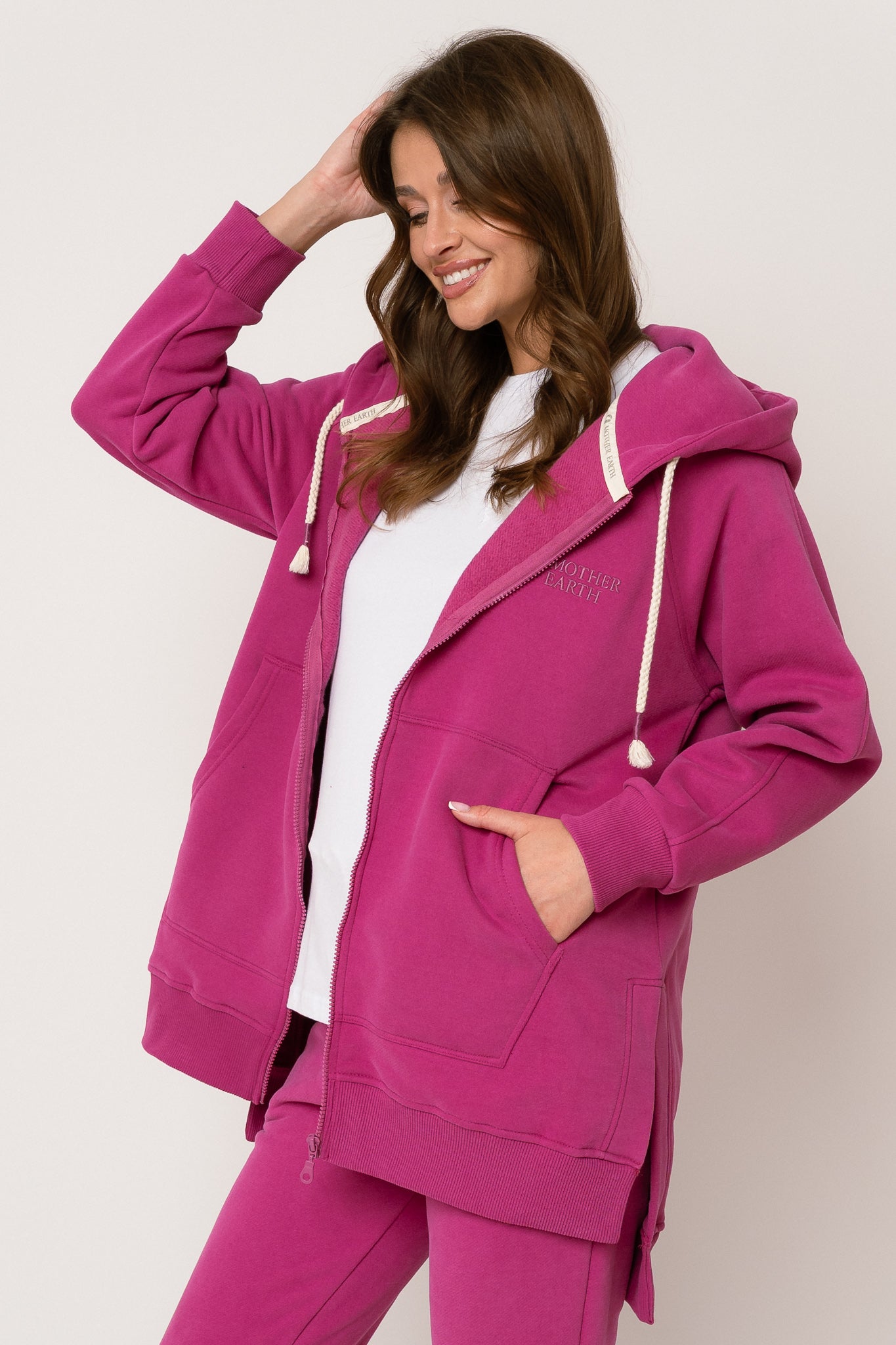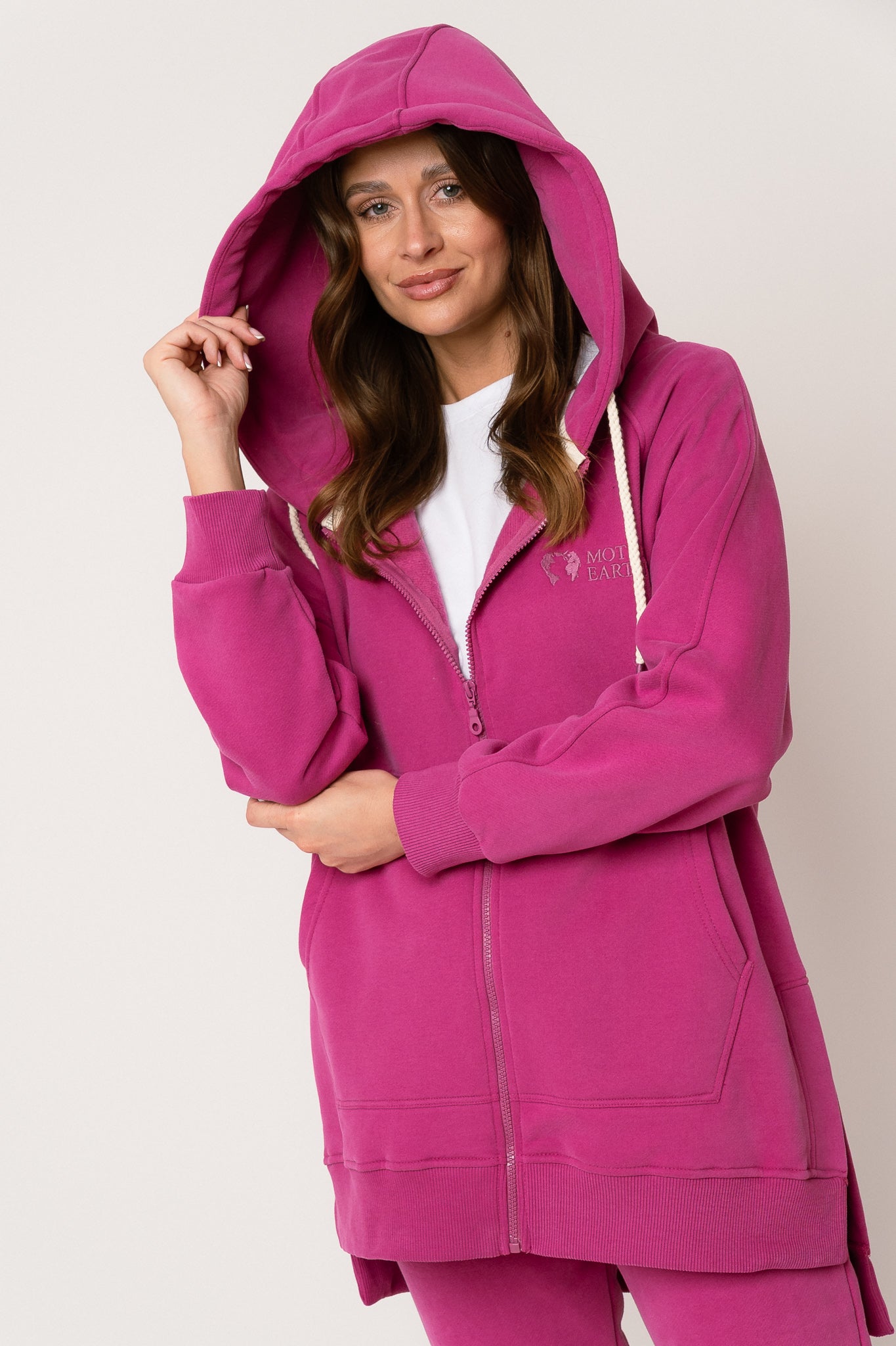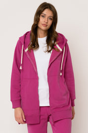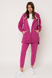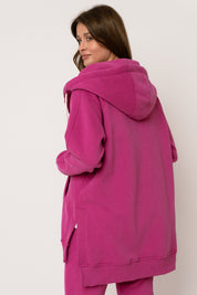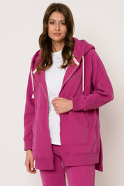 DŁUGA BLUZA Z KAPTUREM ROZPINANA RÓŻOWA - ESMERALDA