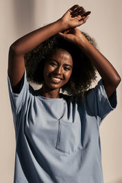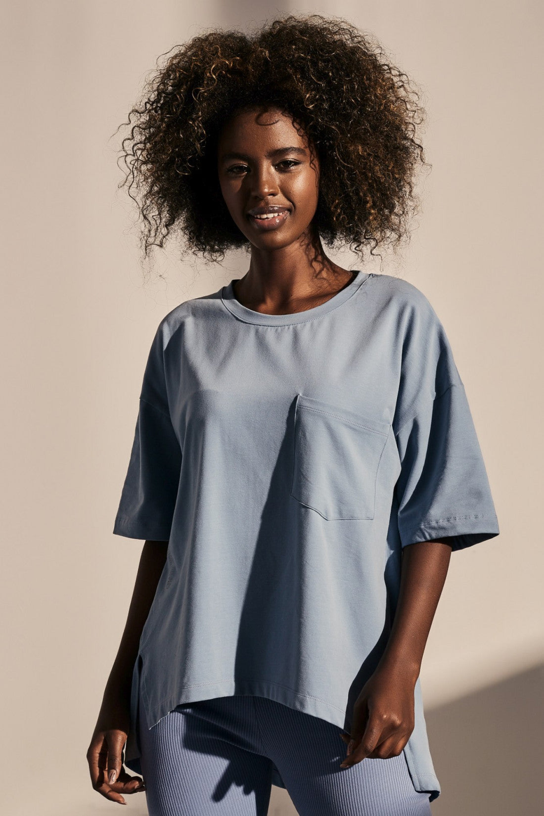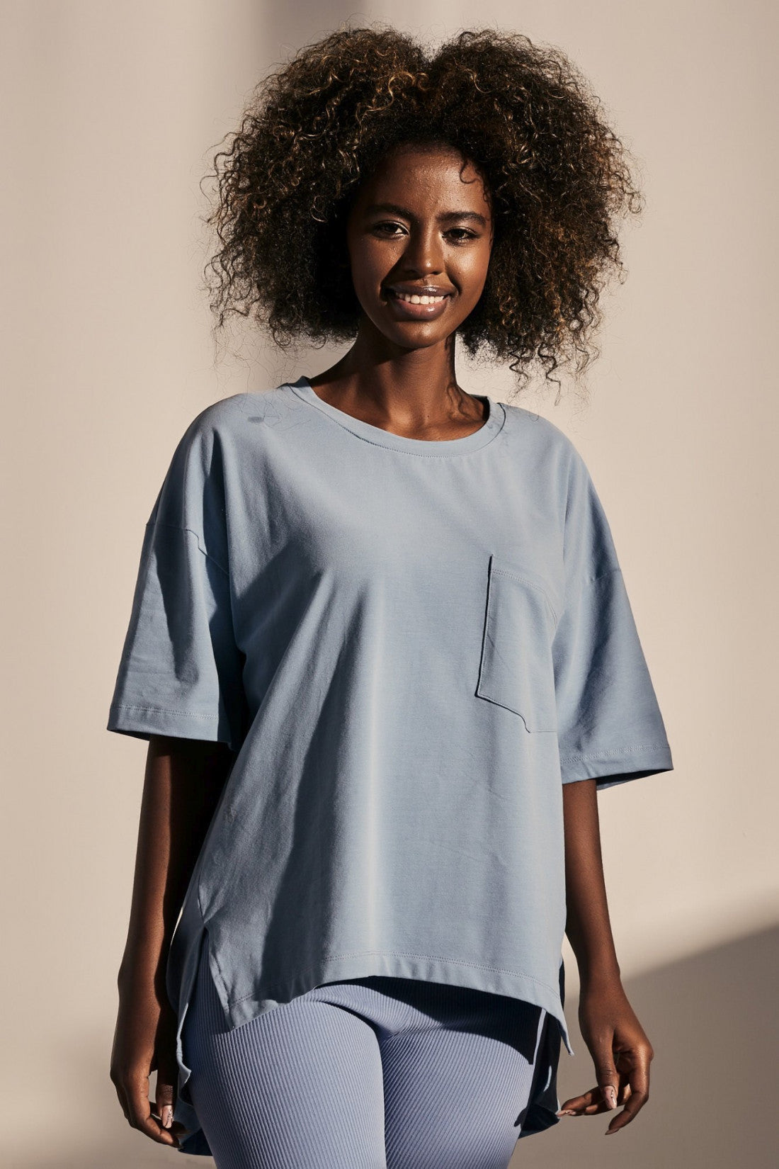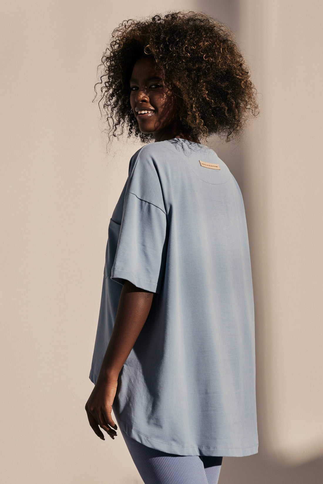 ASYMETRYCZNY T-SHIRT OVERSIZE NIEBIESKI - ELEFANTA