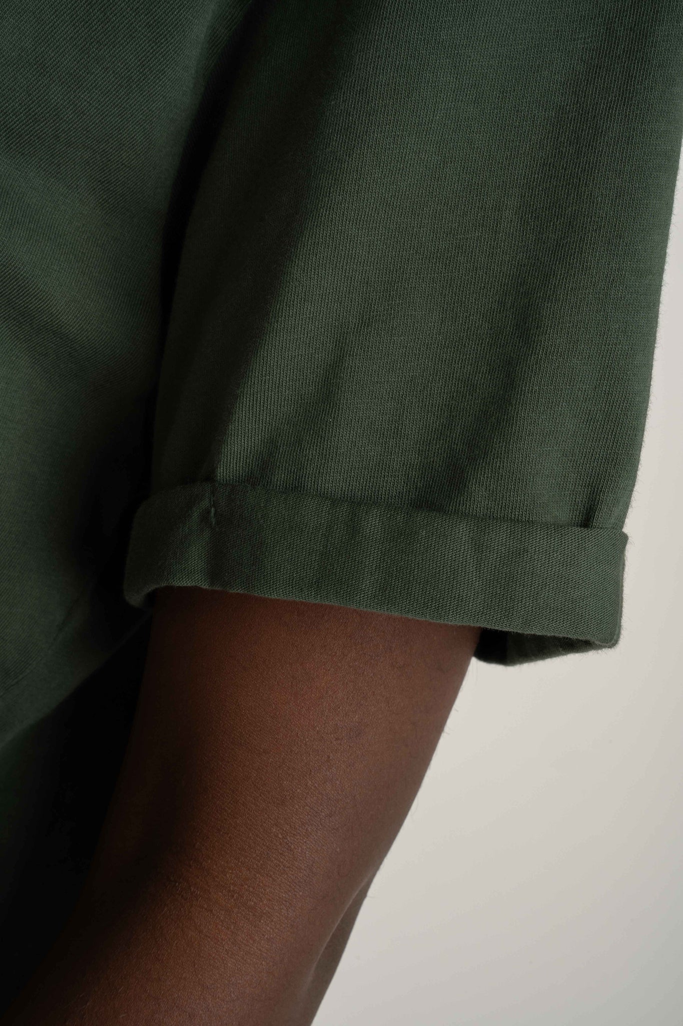 T-SHIRT OVERSIZE Z DELIKATNYM EFEKTEM SPRANIA ZIELONY - MORAINE