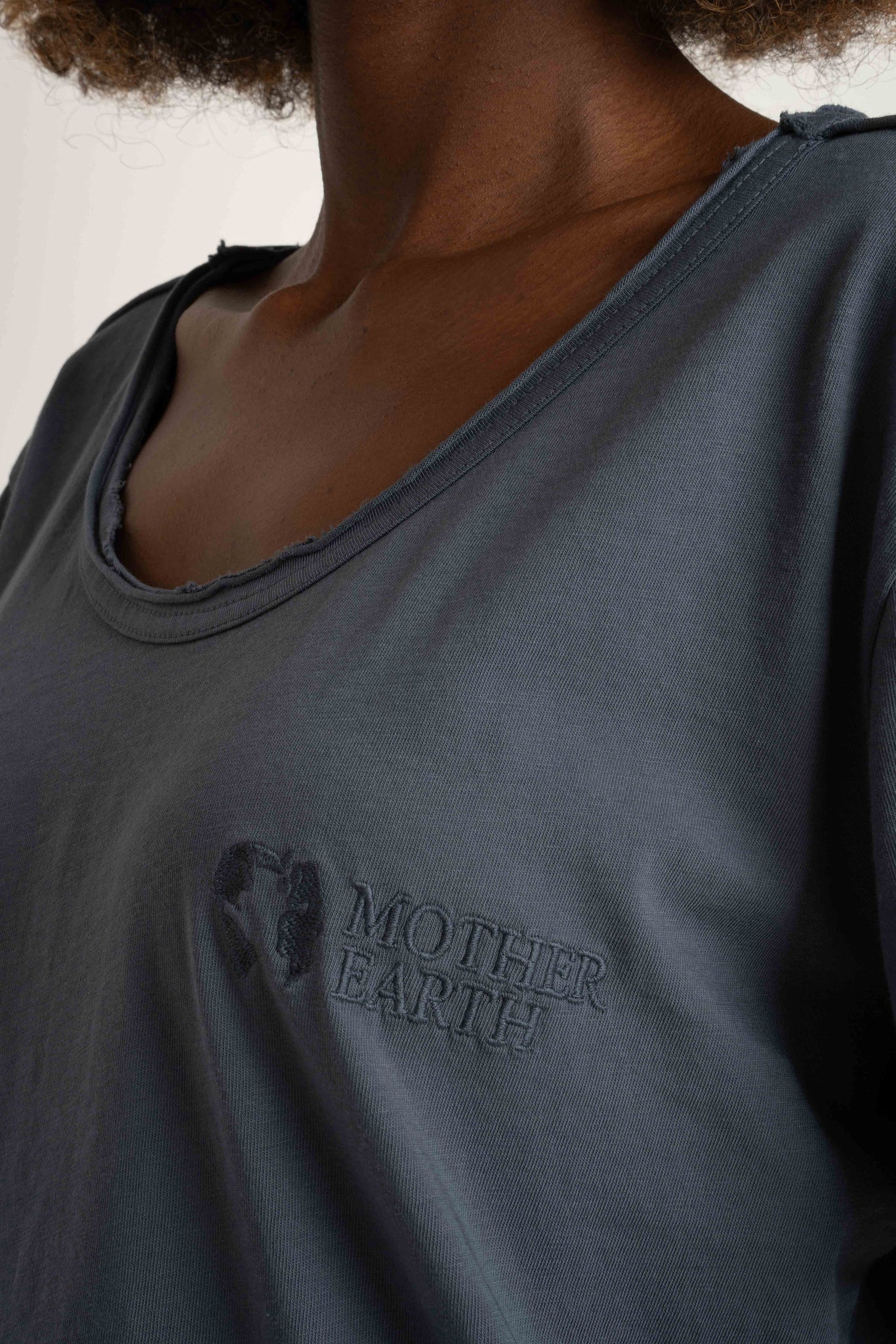T-SHIRT OVERSIZE Z DELIKATNYM EFEKTEM SPRANIA SZARY - NUSA