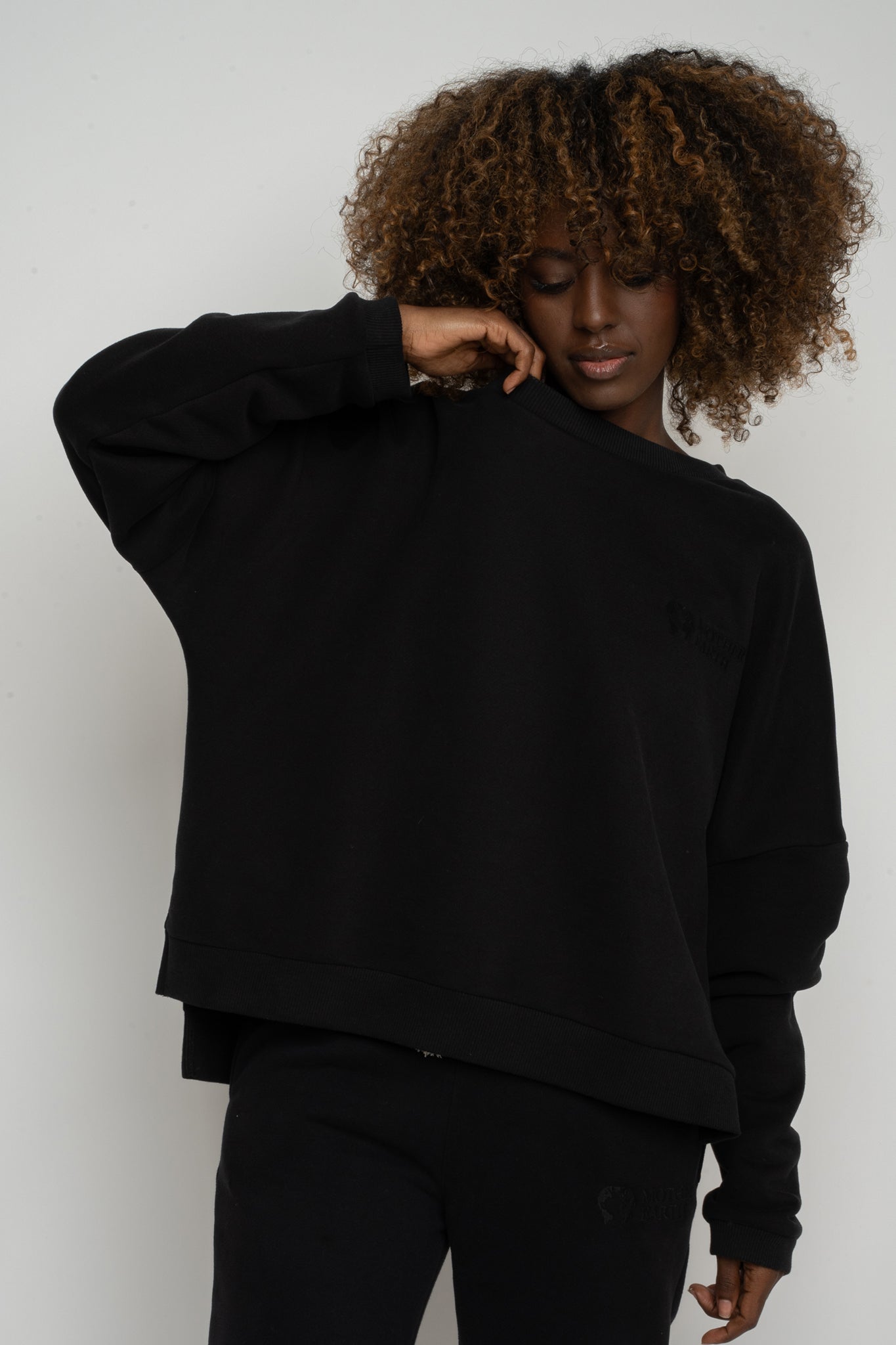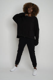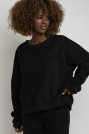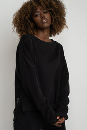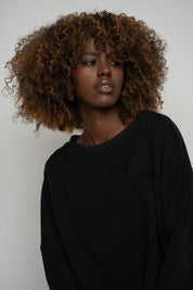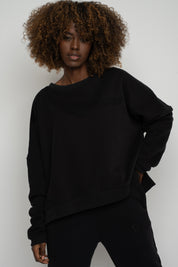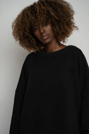 BLUZA O KROJU REGULAR FIT Z DŁUŻSZYM TYŁEM CZARNA - COOK
