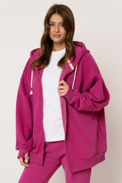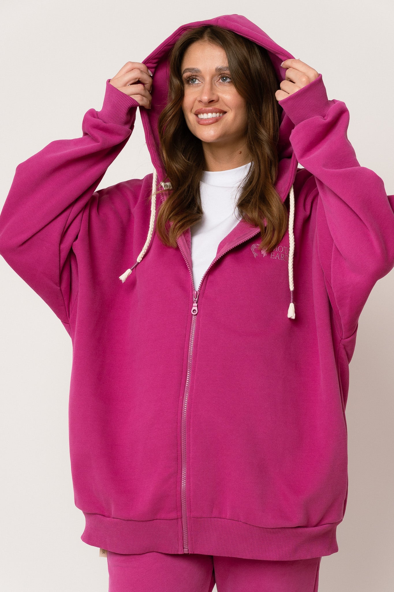 BLUZA Z KAPTUREM ROZPINANA RÓŻOWA-NIKO