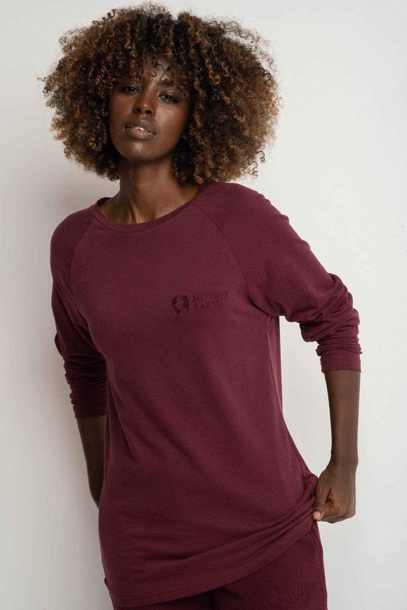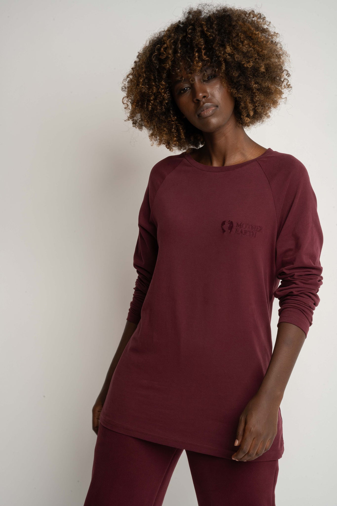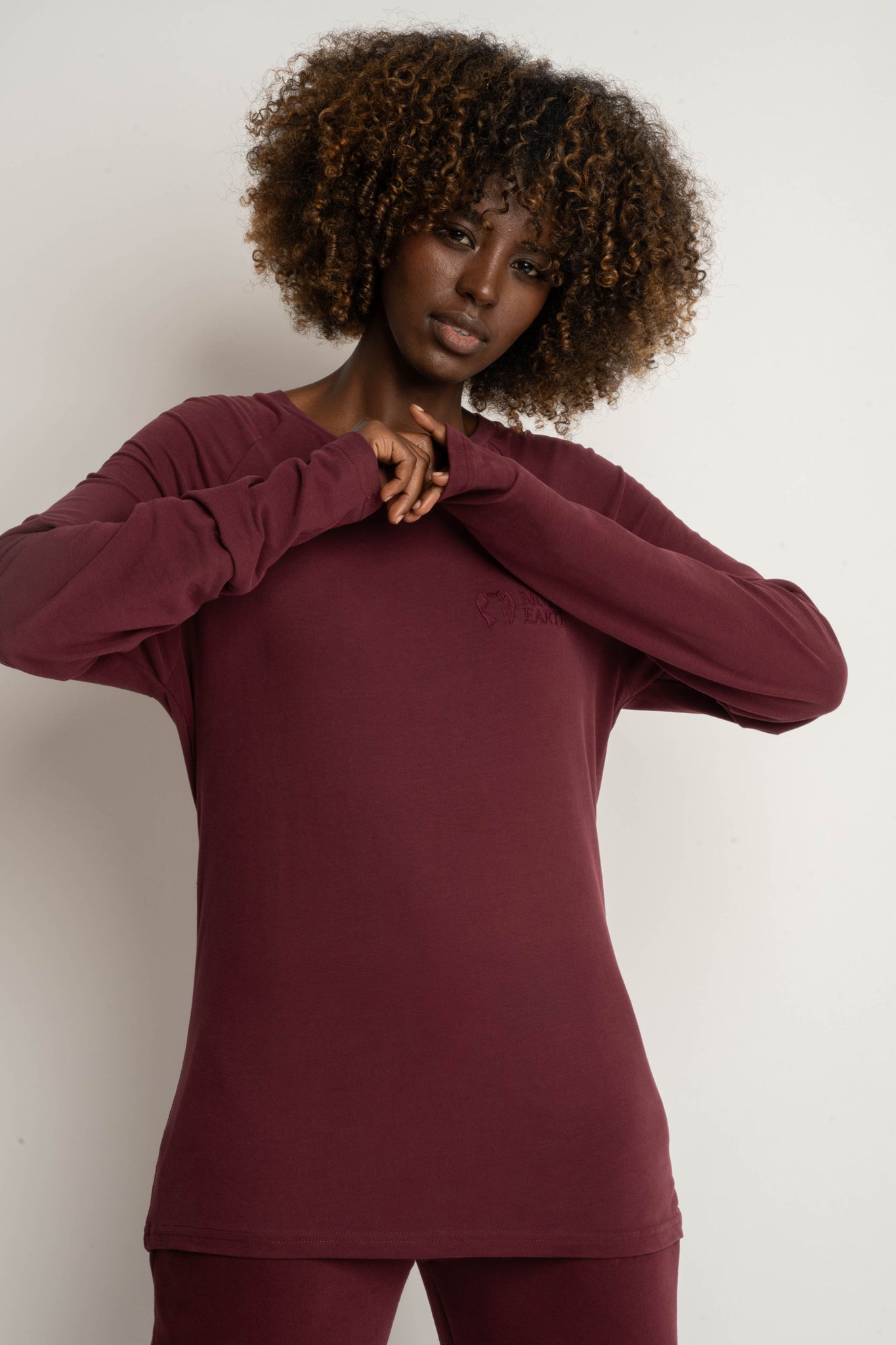 BLUZKA Z DŁUGIM RĘKAWEM BORDOWA - INARI