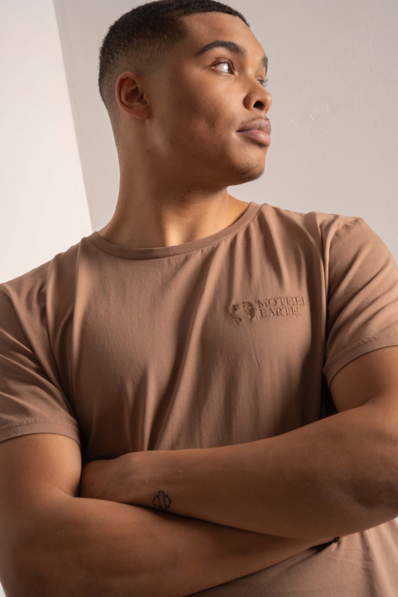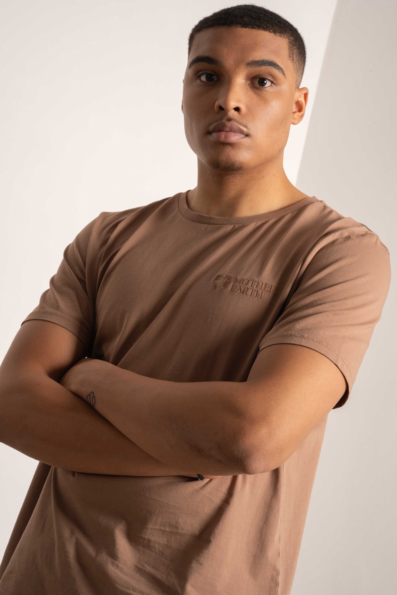 T-SHIRT OVERSIZE Z DELIKATNYM EFEKTEM SPRANIA BRĄZOWY - MOROTAI